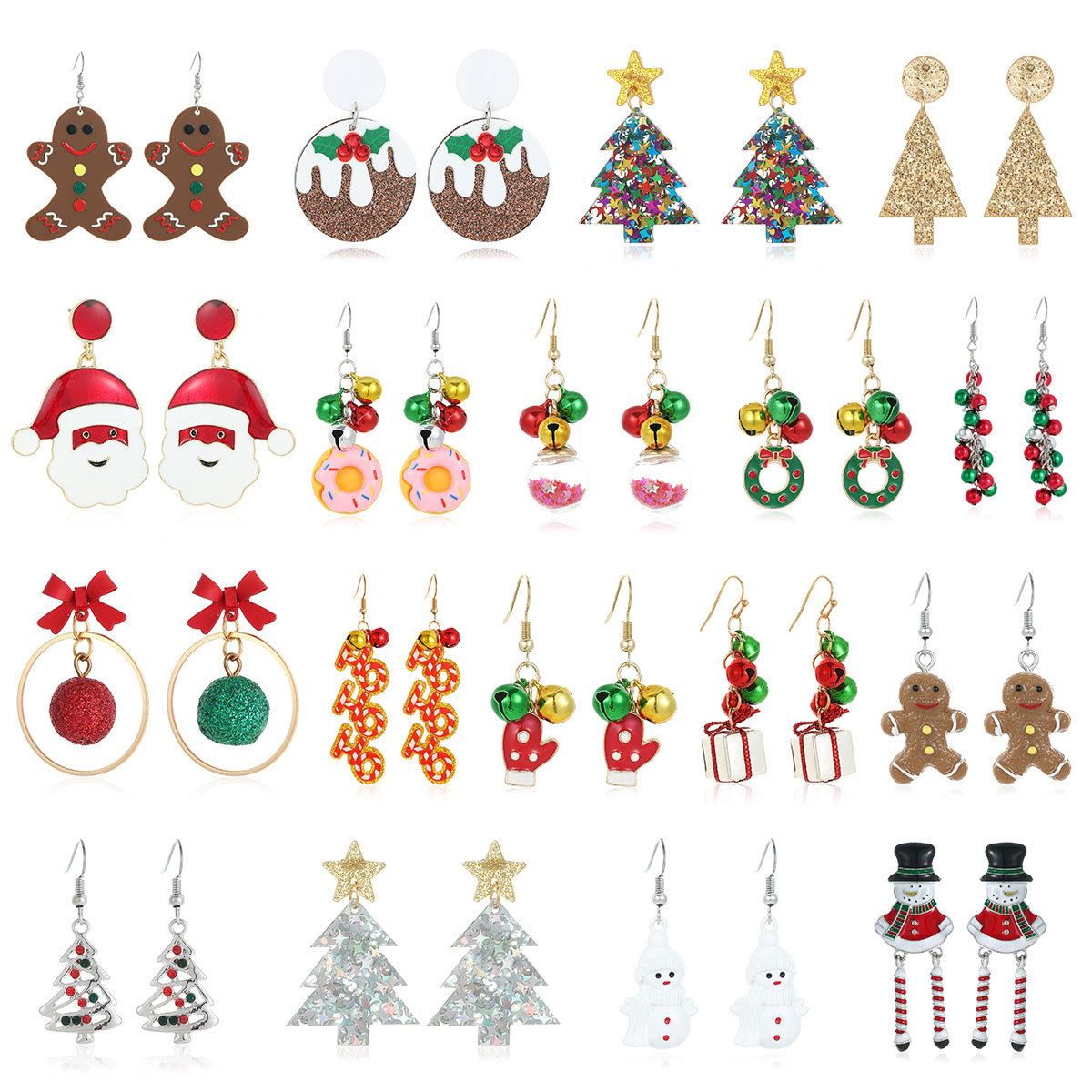 跨境耳环女圣诞节派对耳饰彩色铃铛圣诞树雪人吊坠圣诞节耳饰耳环
