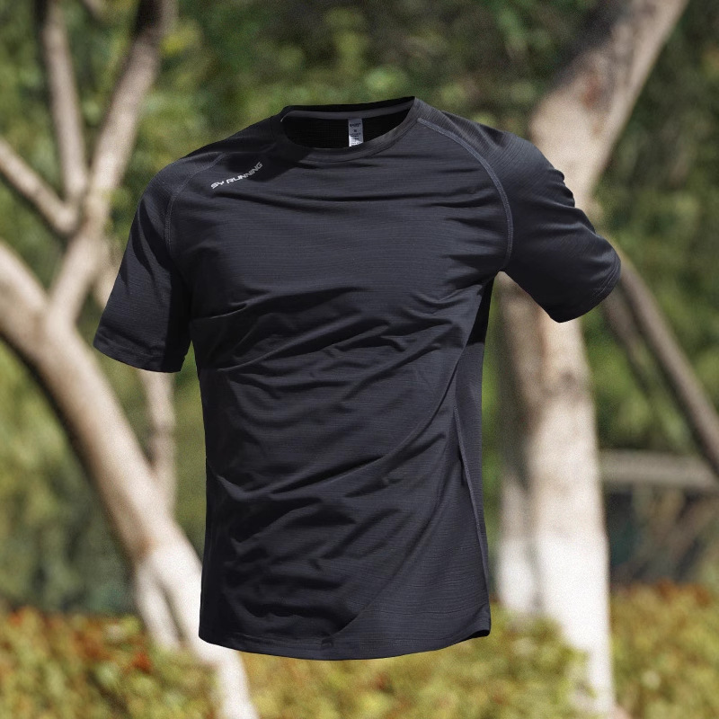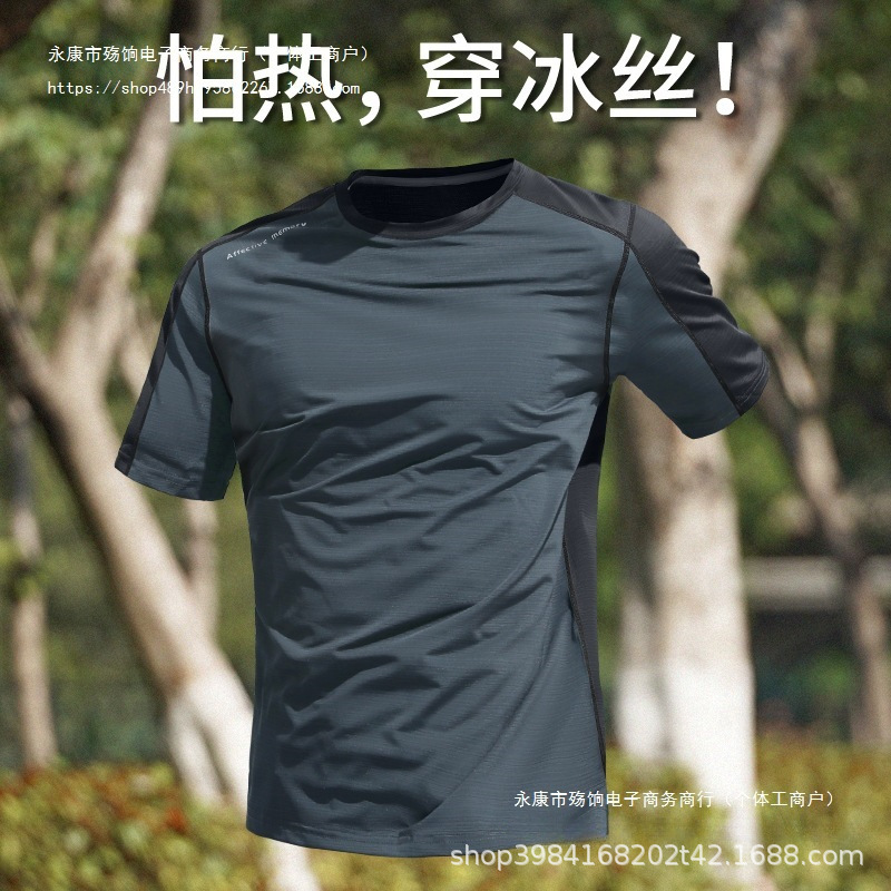 クロスボーダー速乾tシャツ男氷糸夏薄手運動半袖フィットネス服トレーニングランニング服新型上着