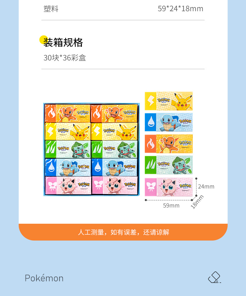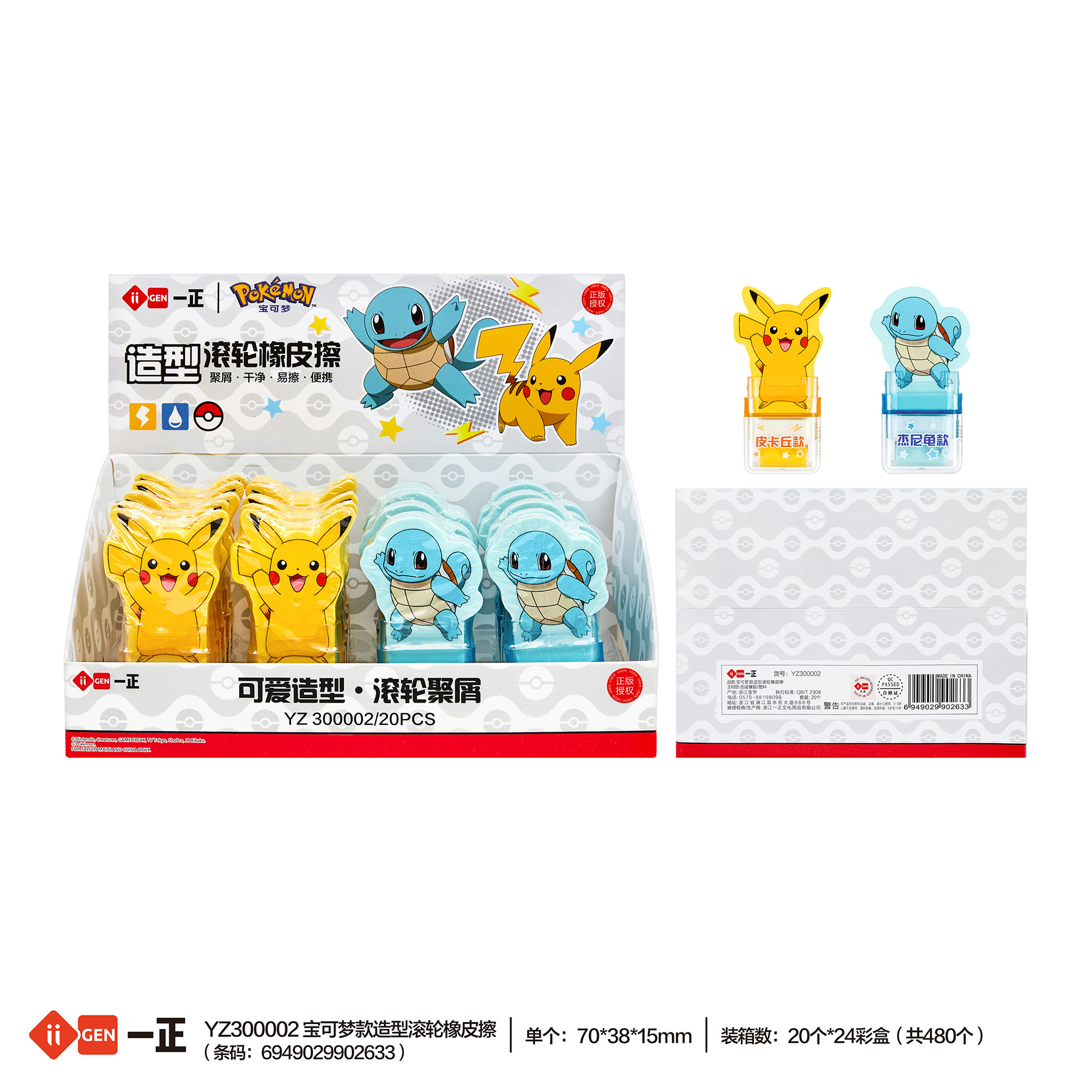 iigen一正文具宝可梦形象卡通造型滚轮橡皮擦小学生专用聚屑橡皮