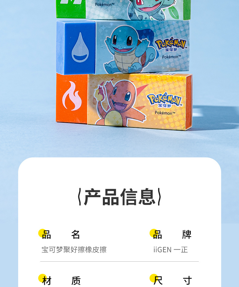 iigen一正文具宝可梦形象魔术盒橡皮擦卡通趣味小学生专用铅笔擦