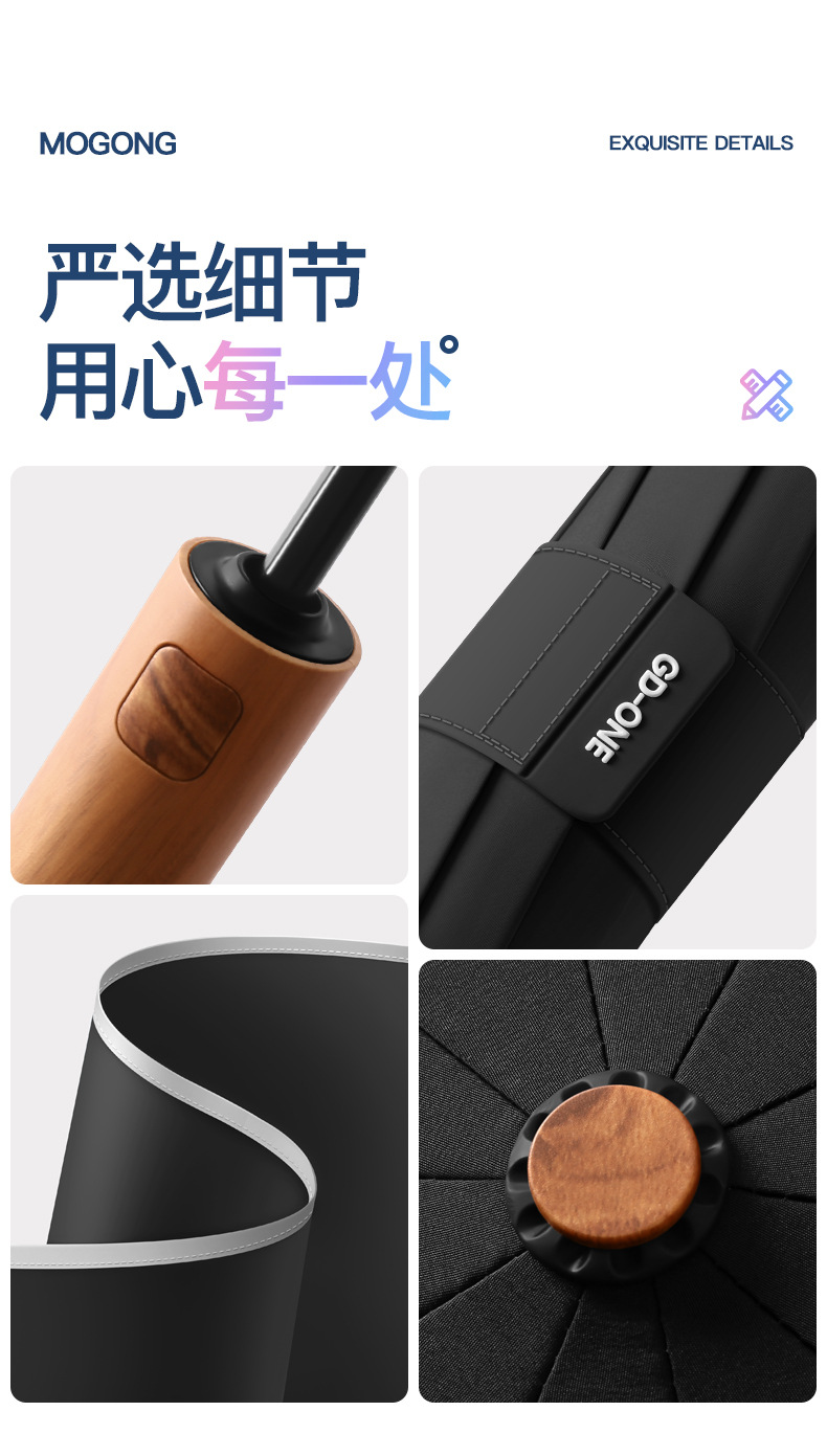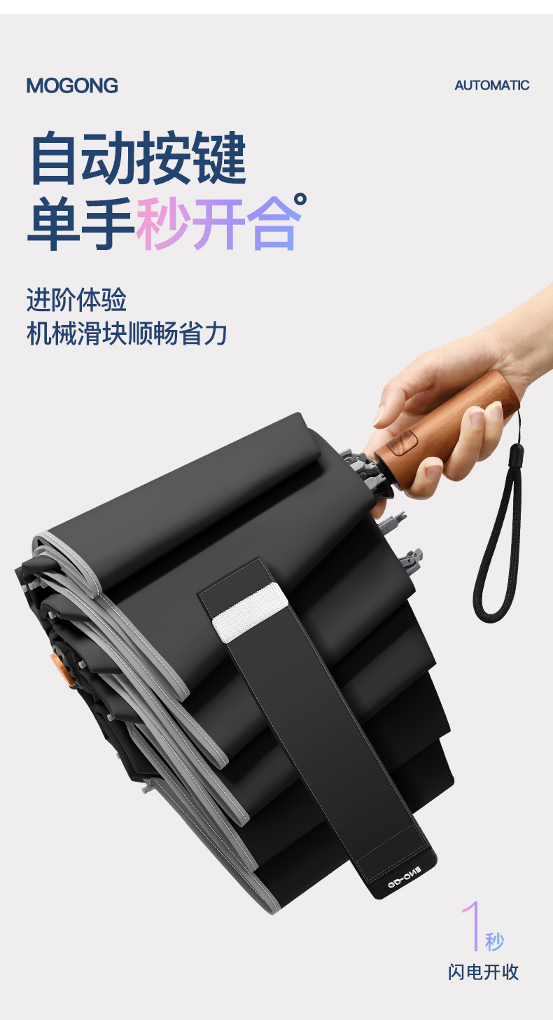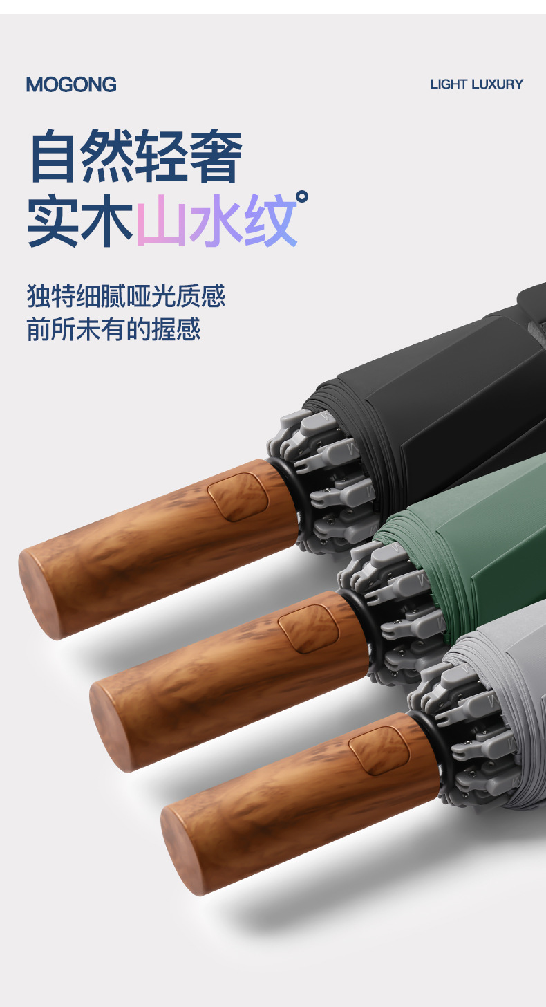 10骨节节收防回弹木纹反向自动伞一键开收商务晴雨伞厂家现货印字