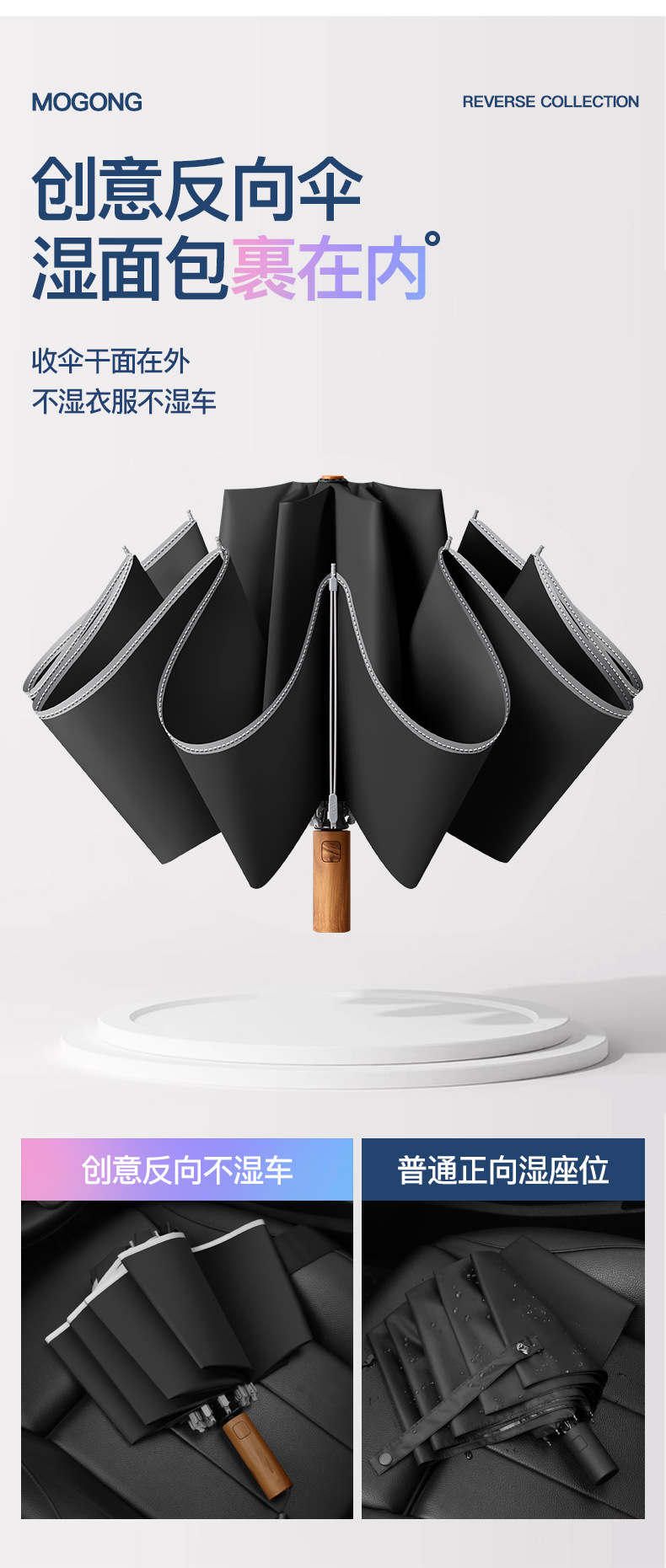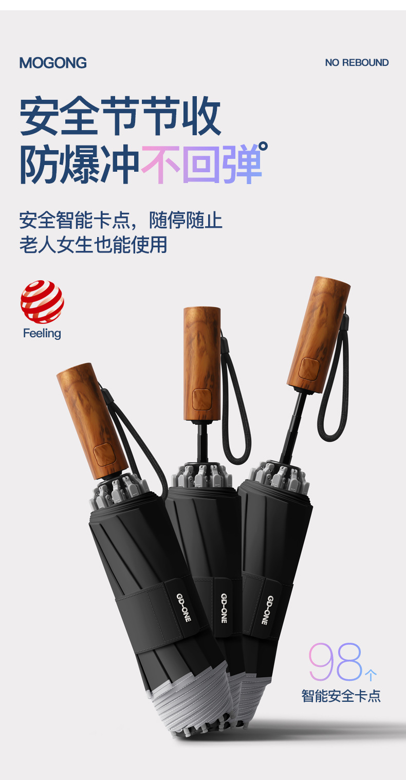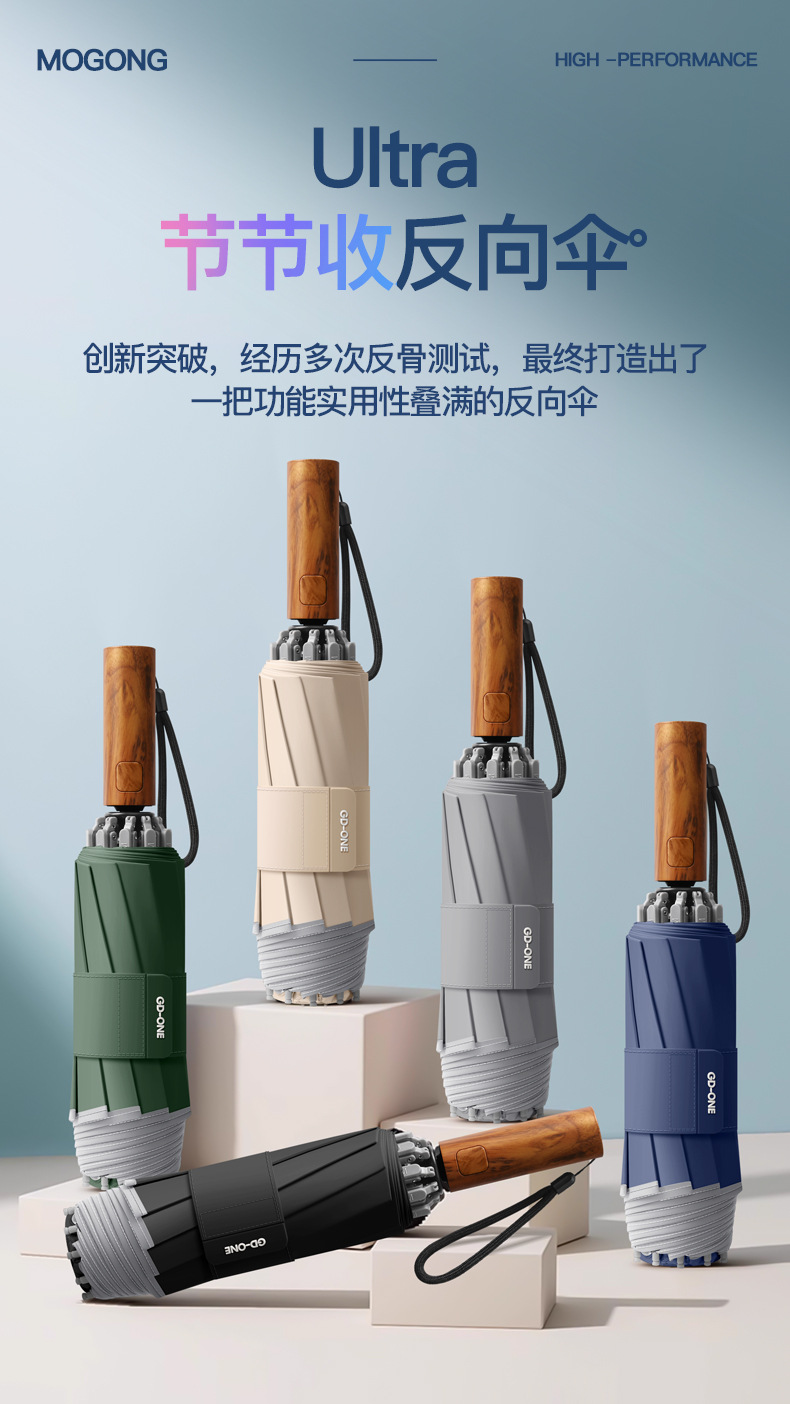 10骨节节收防回弹木纹反向自动伞一键开收商务晴雨伞厂家现货印字