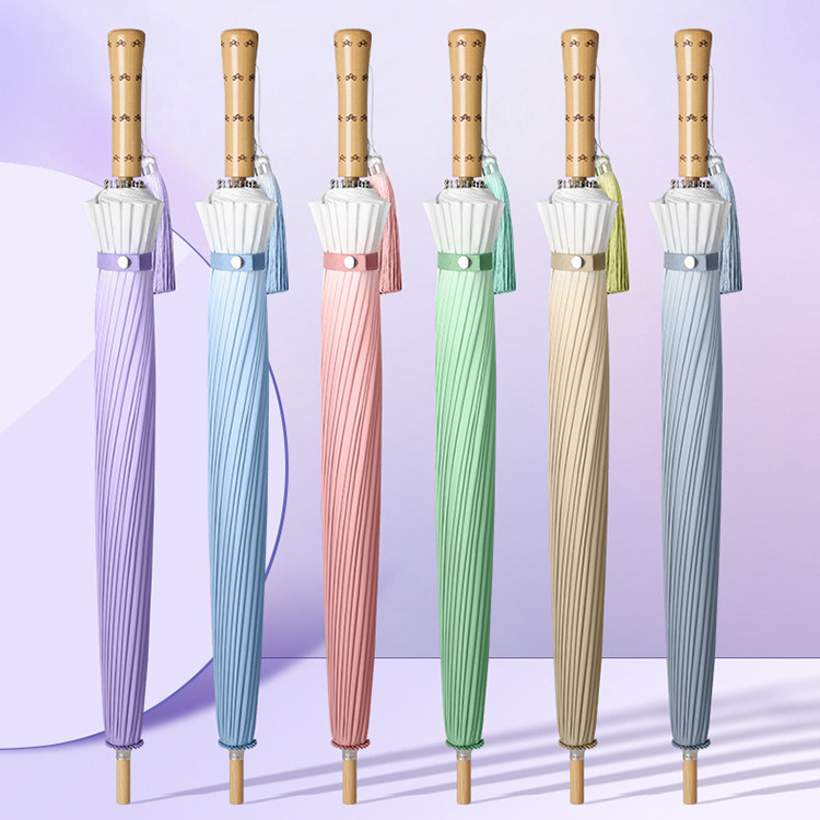 グラデーション24骨直棒流蘇防風傘がだんだん復古風直柄傘が補強されて広告メーカーの現物を印刷できる