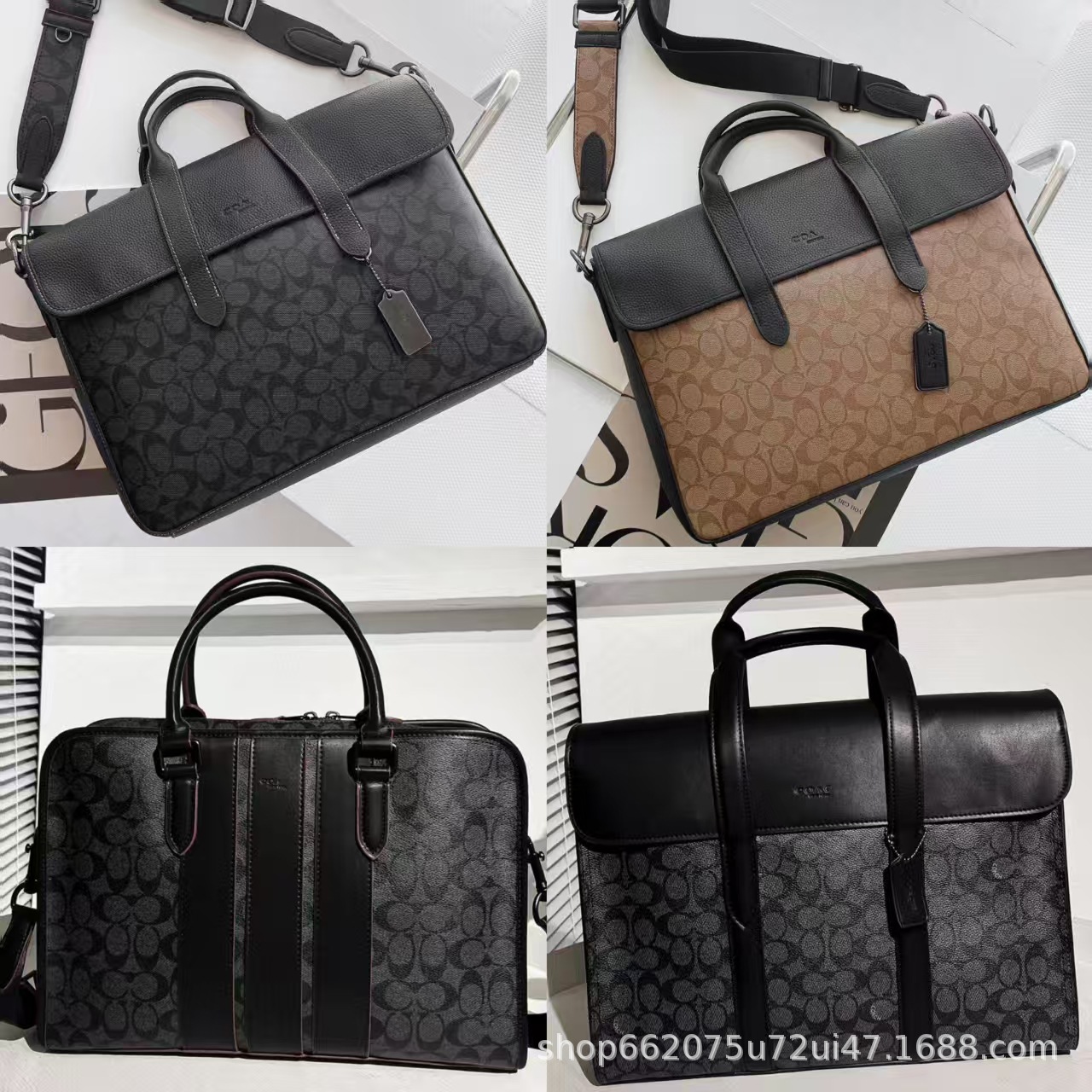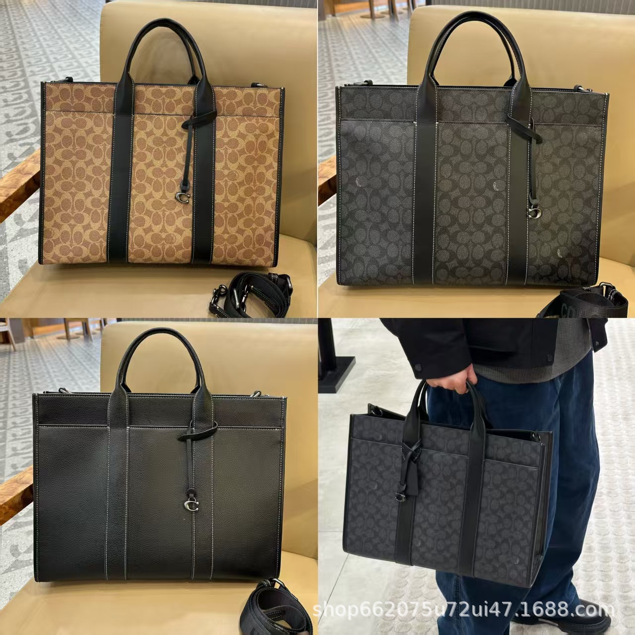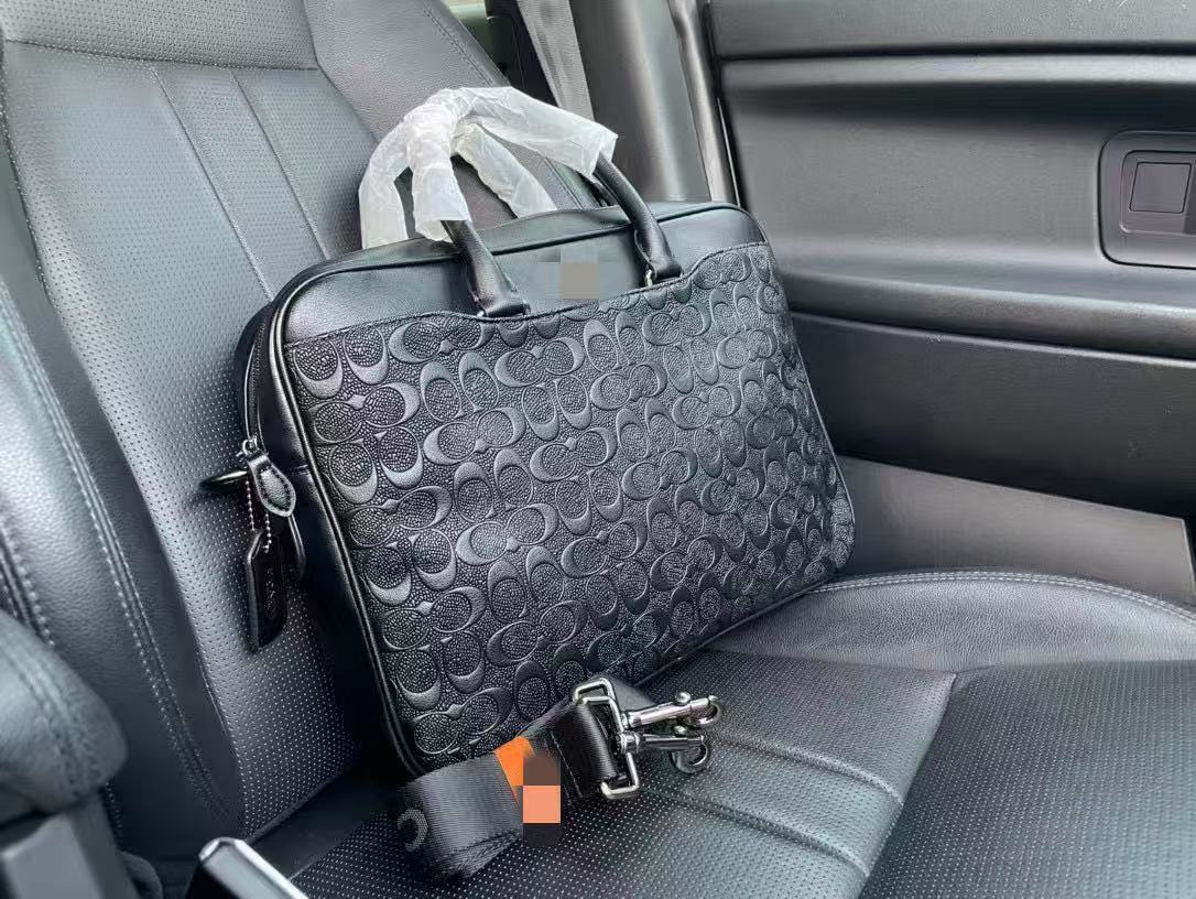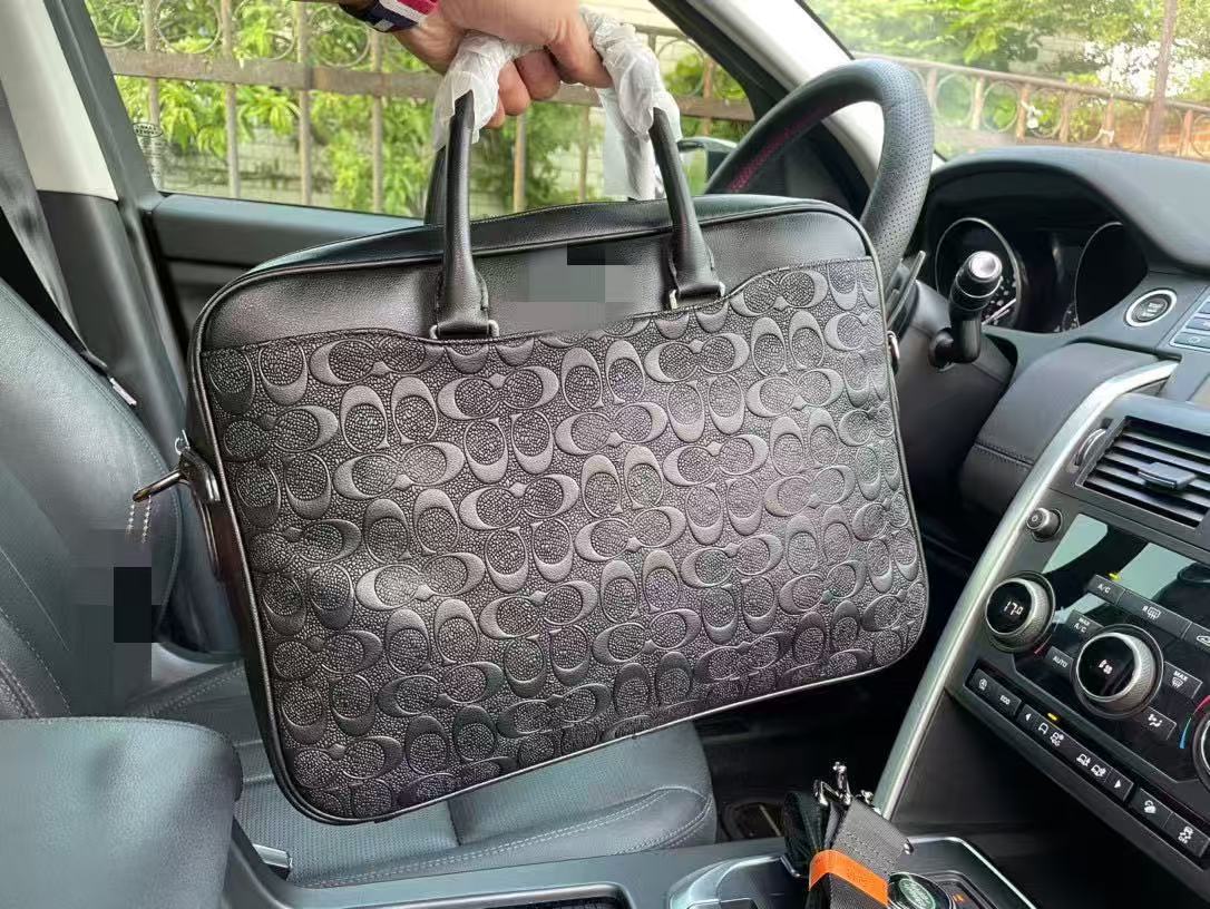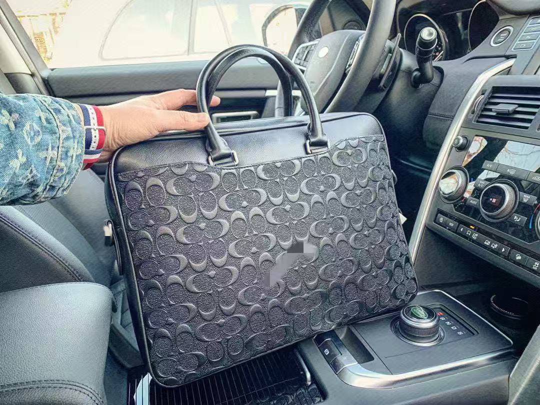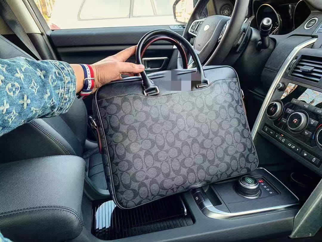 c家奥莱新款男士大容量真皮老花公文包蔻家商务托特包单肩手提包