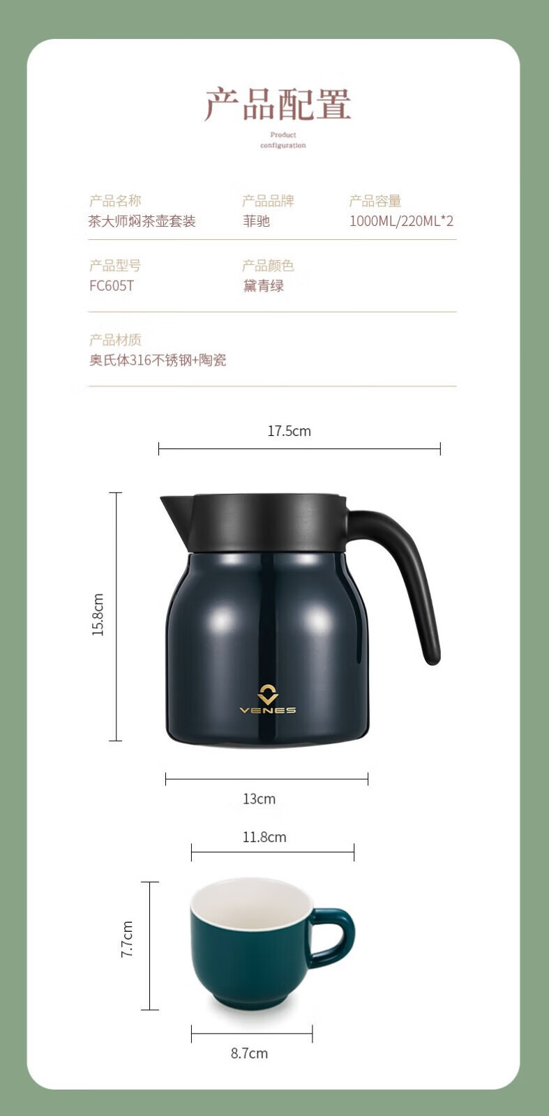 フェイチ ティーマスター シチューティーポットセット FC605T 茶水分離断熱ティーポット ティーカップセット 220ml*2