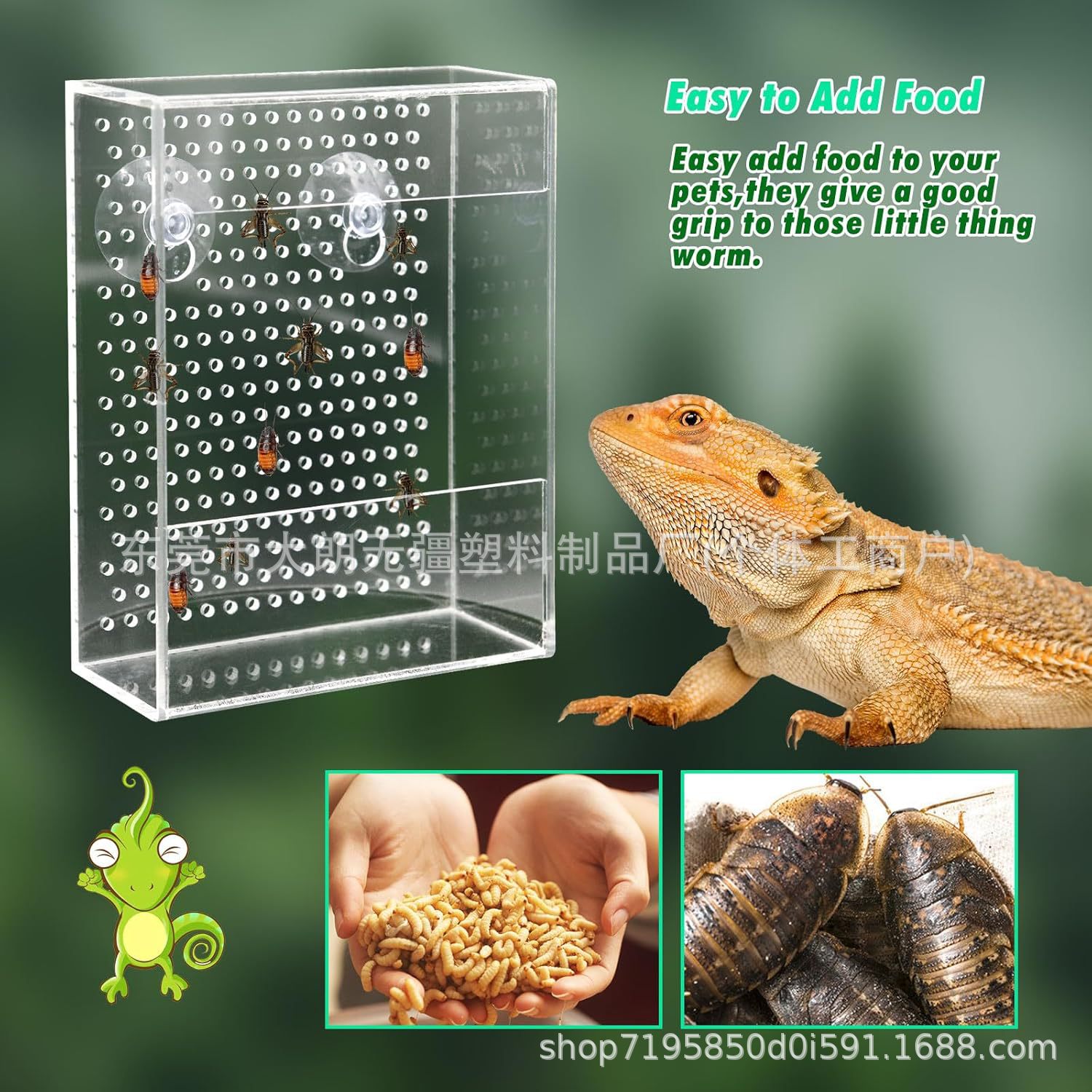 アクリル爬虫類給餌ボックス壁掛け昆虫フィーダー吸盤付きヒゲトカゲトカゲ用