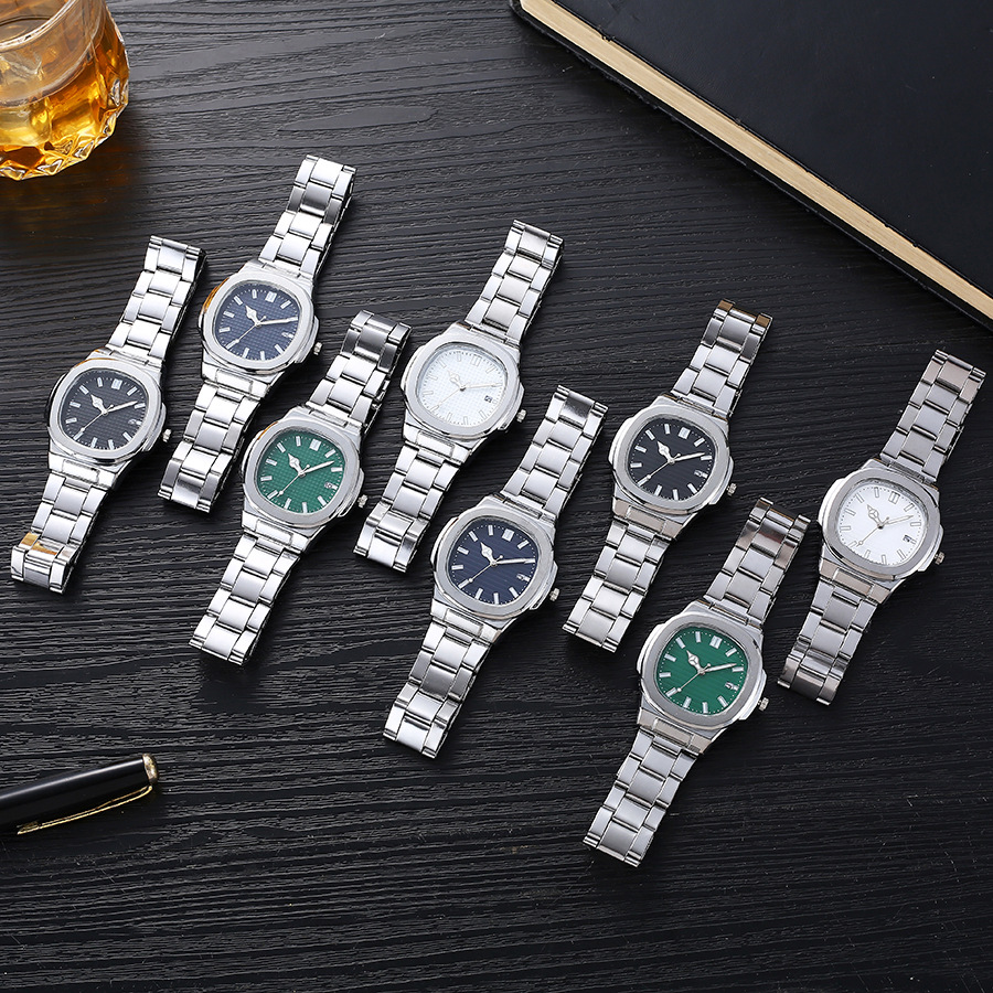 2025 新しい外国貿易スクエアスポーツカレンダースチールバンド腕時計メンズスチールバンドクォーツ時計メーカー卸売