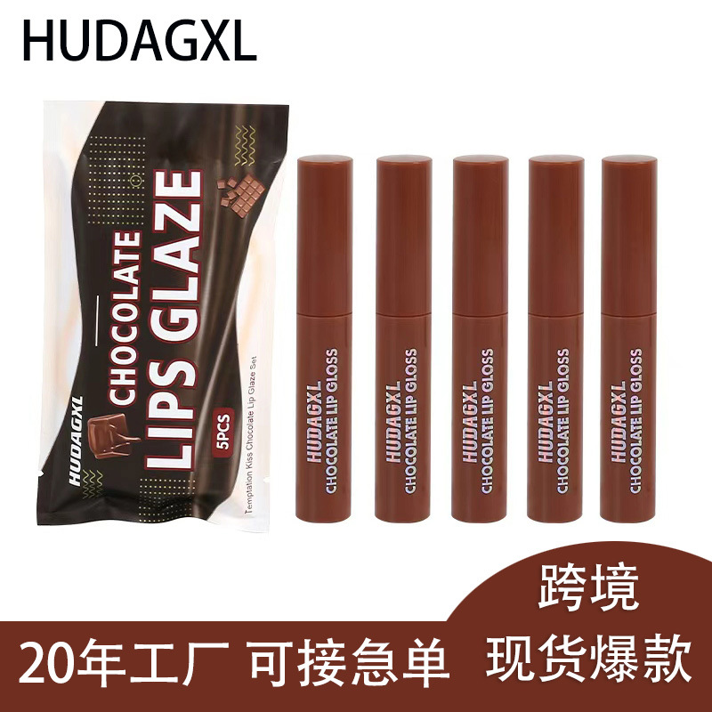 跨境爆款巧克力唇彩套装学生显白五支唇彩唇釉哑光雾面唇彩不掉色