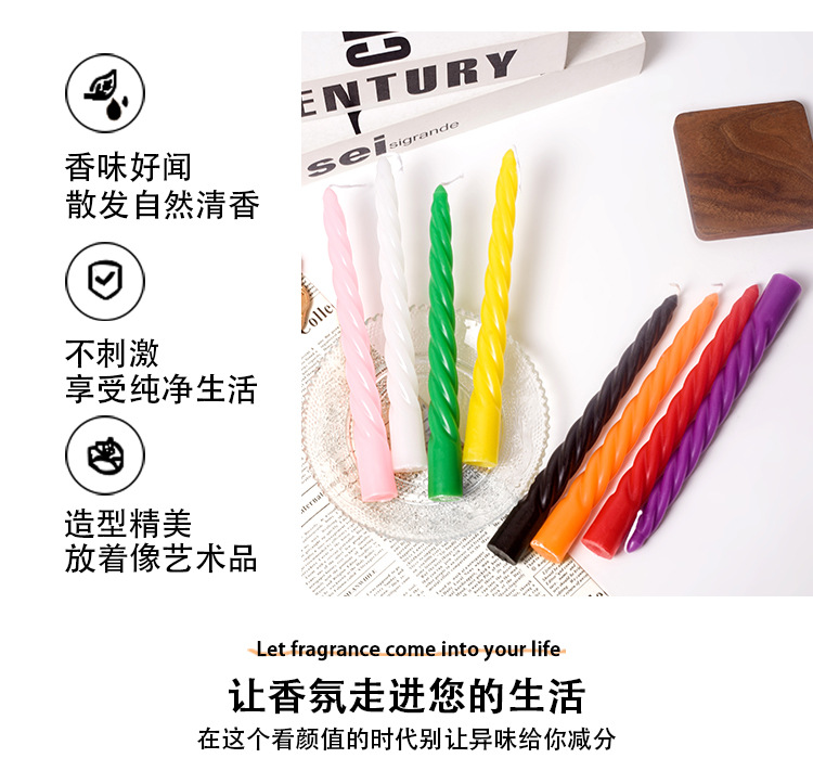 工場直売ねじ棒ワックスカラー棒ワックススパイラル長棒ワックス無煙ろうそくヨーロッパ式10インチ25cmろうそく