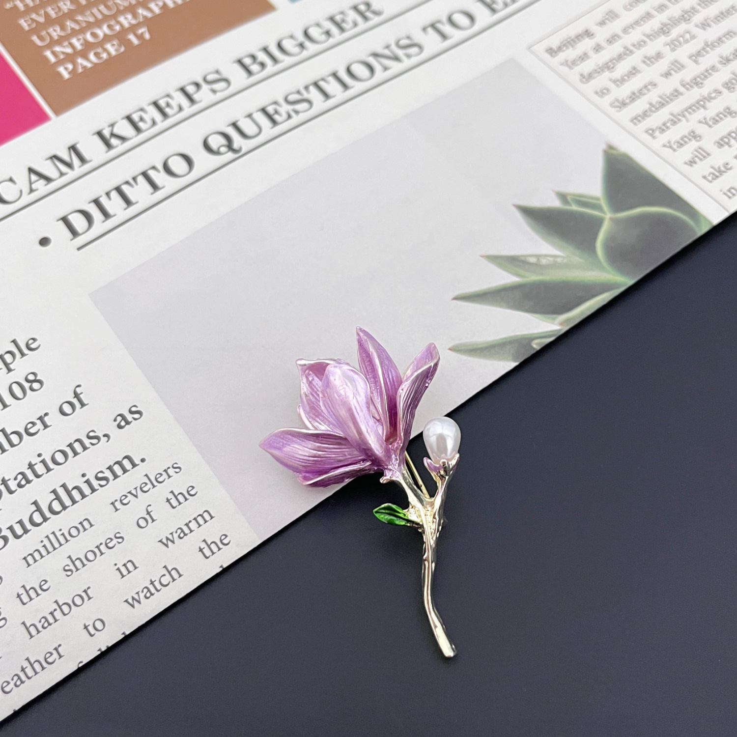 国風淡々とした上品で洗練されたモクレンのブローチ