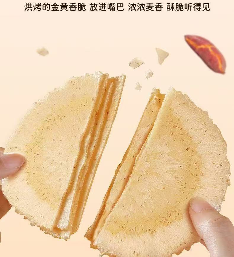 全麦红薯风吹饼薄脆麦香浓郁清甜可口片片酥脆休闲办公室下午茶点