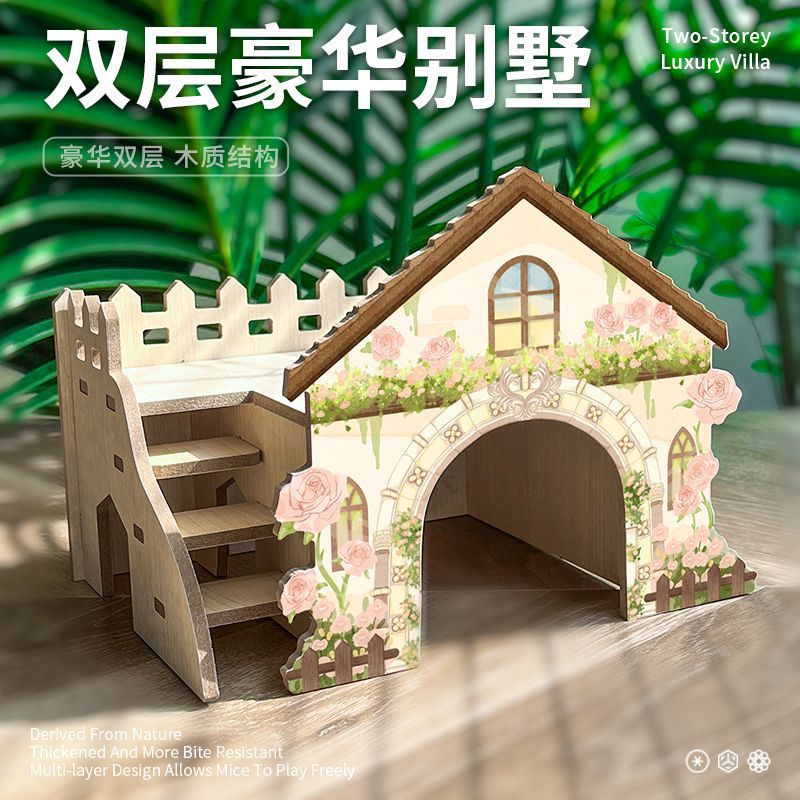 金丝熊躲避屋便宜玩具造景木屋平台爬梯仓鼠木质互动可爱隐蔽M