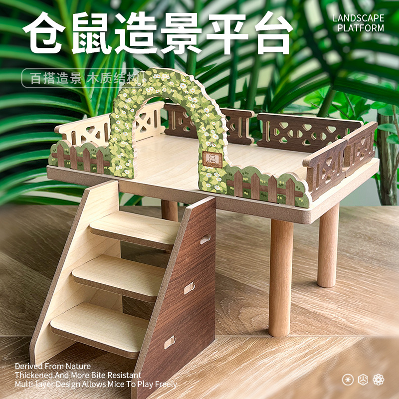 仓鼠平台带楼梯芦丁鸡刺猬二层平台造景用品实木金丝熊小宠物M