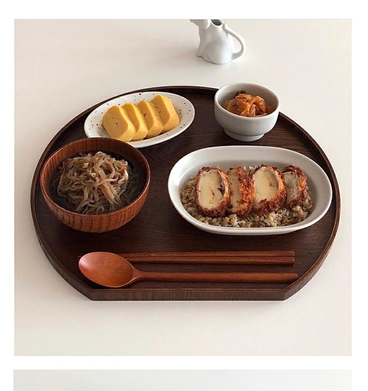 木製和式トレー家庭用トレー食器セット一人で食べる不規則な円形トレー朝食皿