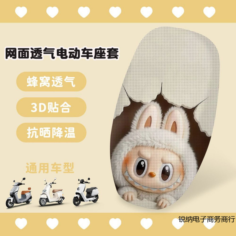 Labubu 夏電気自動車シートカバーメッシュ日焼け防止通気性断熱バッテリーオートバイクッションシートシートカバー