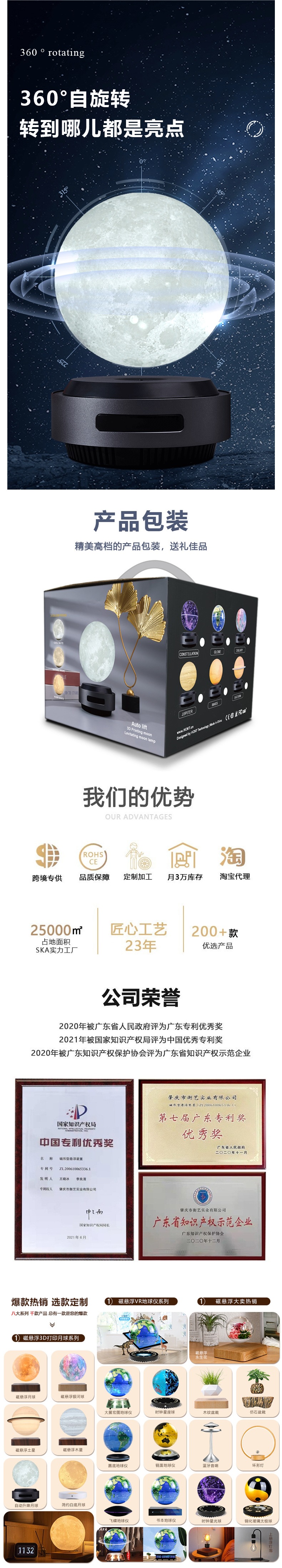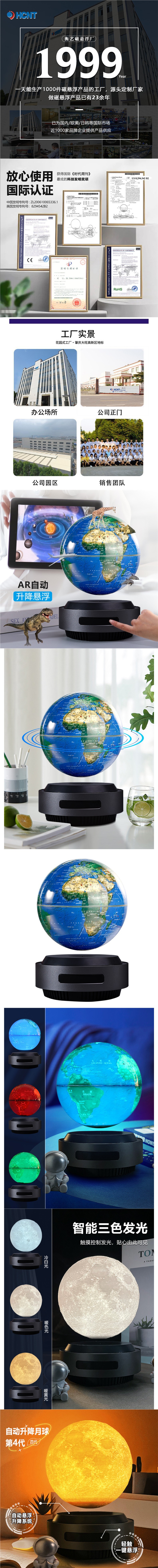 6inch 自動リニアモーターカーリフト地球儀中学生と高校生教育器具オフィス装飾品発光常夜灯