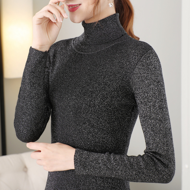 2023秋冬新作レディースファッション 欧米風光沢糸ハイネック長袖無地ニットセーター 女性向けクロスボーダー光沢糸デザイン