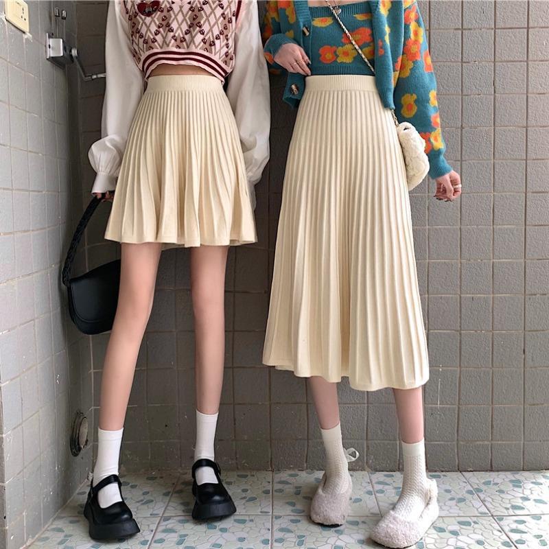 2023秋冬新作ニット中ロングスカートレディース春と秋の小柄なスカートa字ハイウエストスカート