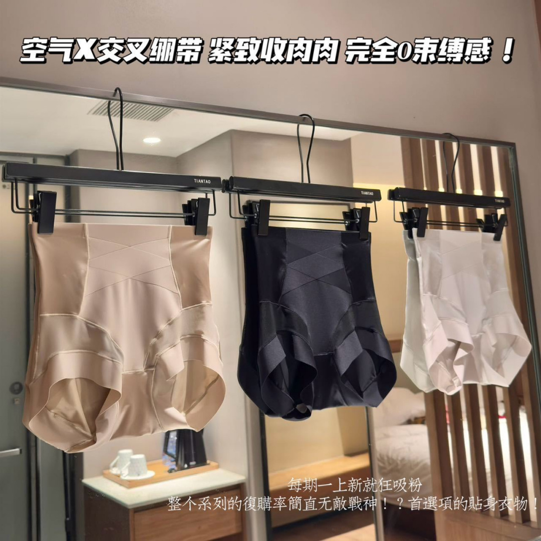 新款交叉高腰收腹提臀裤亲肤透气收小肚子不卷边内裤舒适高弹