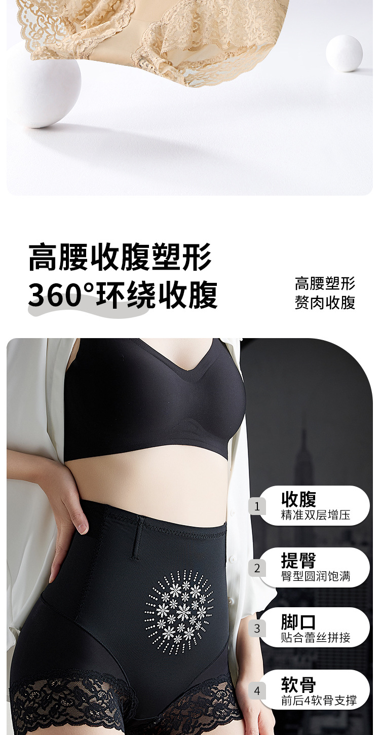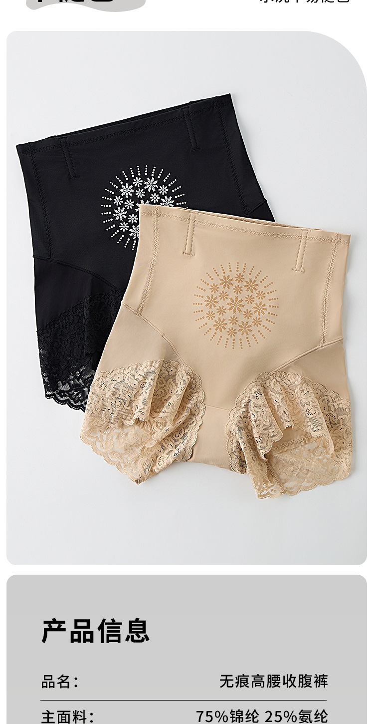 时尚收腹塑身中高腰小魔裤美体无痕蕾丝花边提臀束腹收腹裤