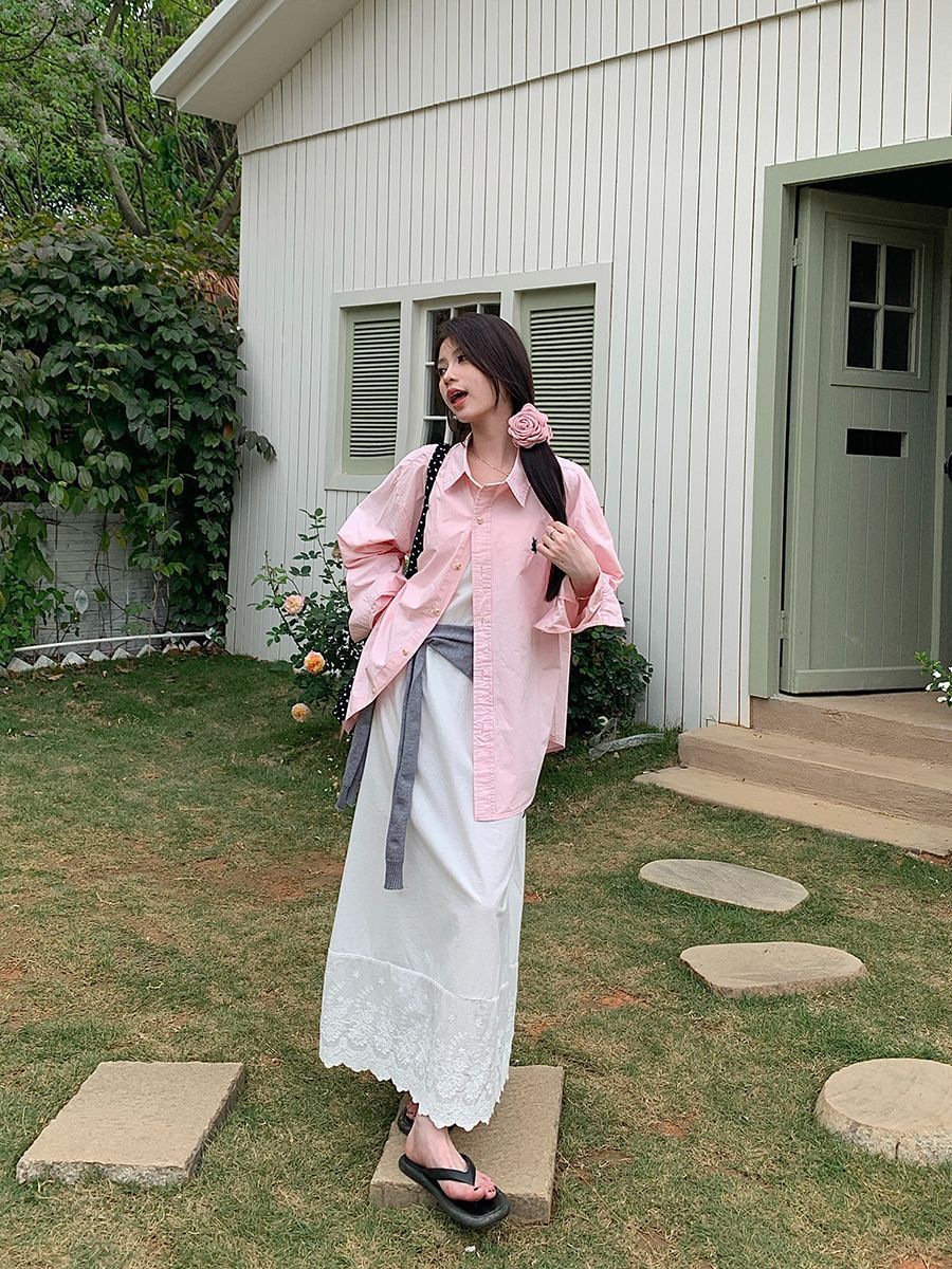 デザイン蝶刺繍長袖シャツ 2025 春の新作ルーズレイジー日焼け止めトップシャツ