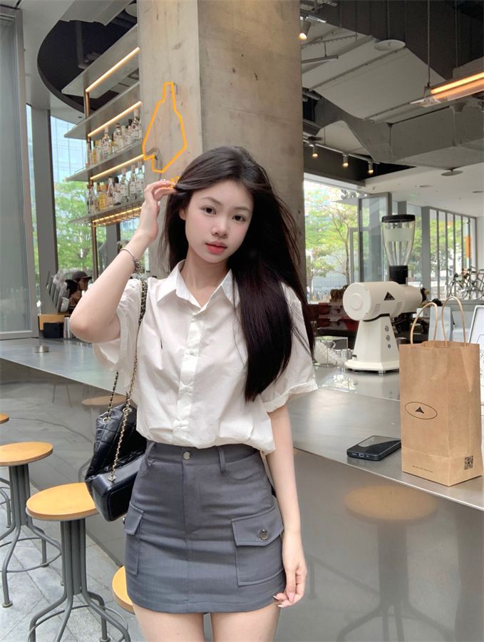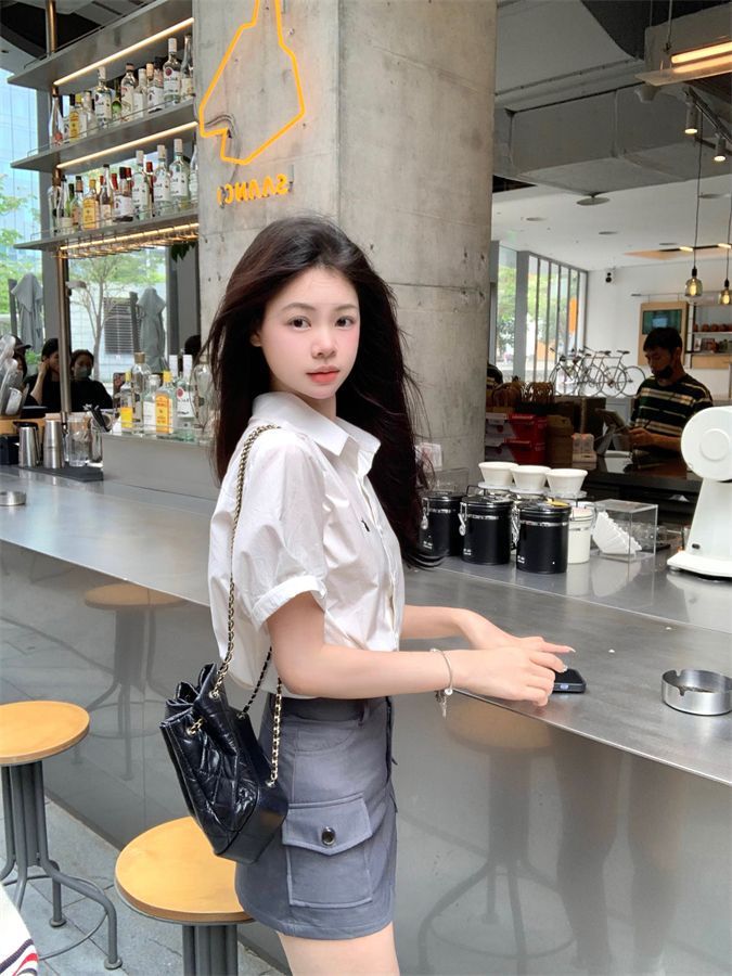 2025 新花びら半袖シャツ夏香港スタイルのレトロなパフォーマンスウェアルーズ人気シャツトップ