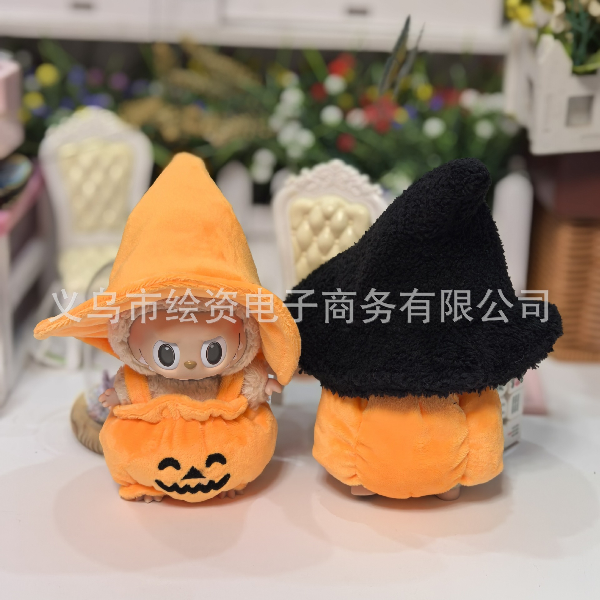 一二三代拉布布搪胶娃娃万圣节南瓜衣服labubu南瓜背带裤套装