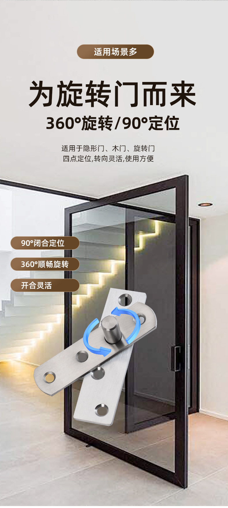 360度旋转气动地轴极窄玻璃门配件拱形门木门转轴90度地弹簧批发