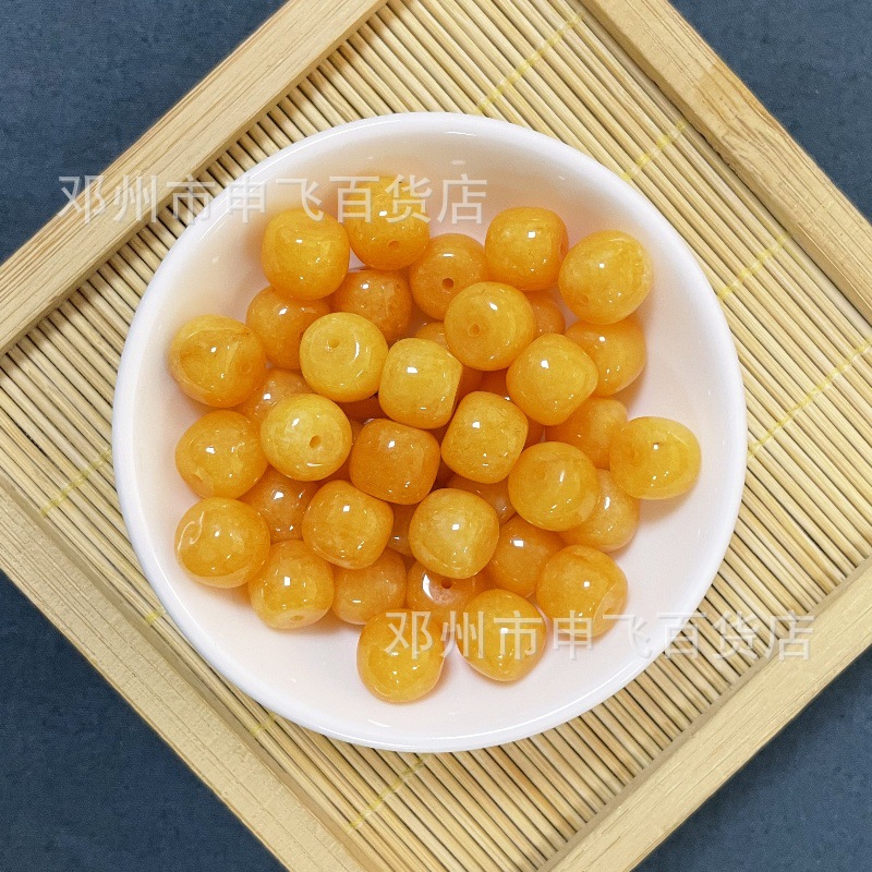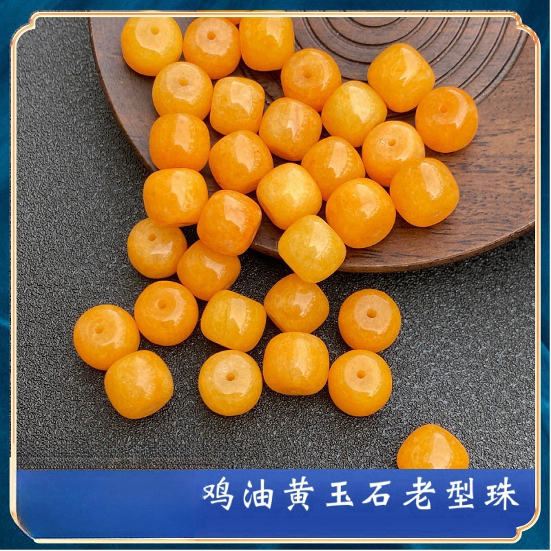 ミツロウ鶏油黄玉髄散珠老型珠手作り半製品ビーズ材料diyブレスレットネックレスアクセサリー