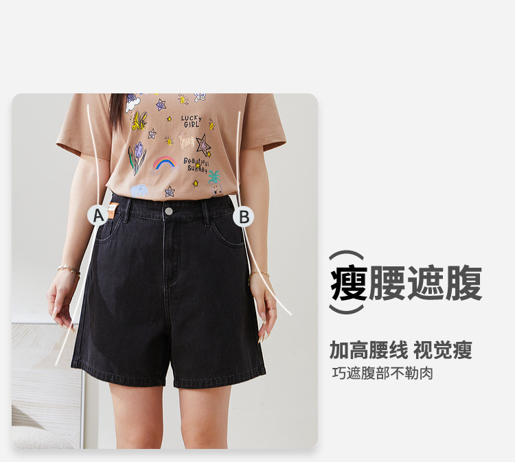 Caiduobao プラスサイズの女性のファット mm2025 夏の新しいレザーブランド装飾スリムデニムショートパンツ EXK5365