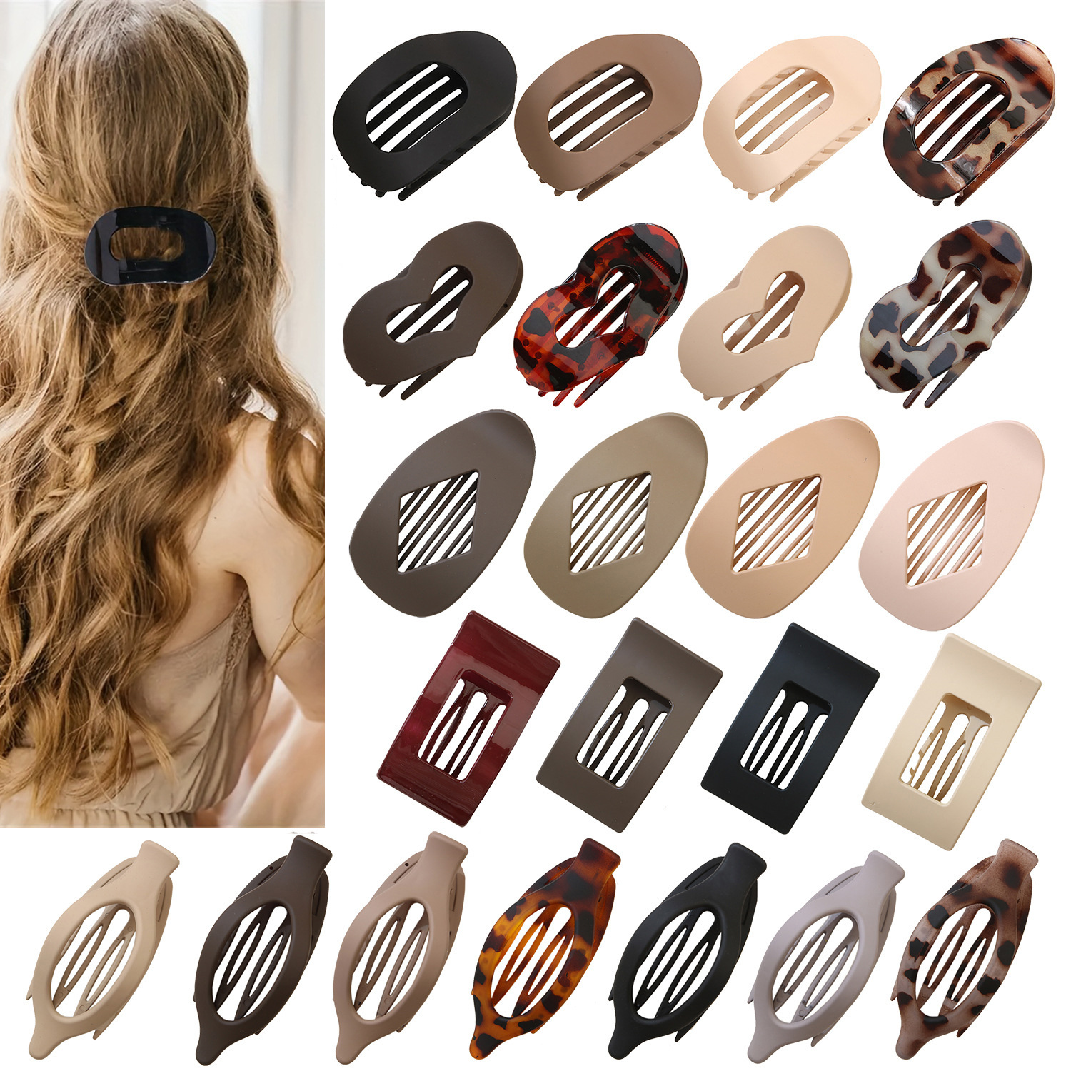 跨境新款扁平椭圆发夹后脑勺盘发抓夹弯曲弧形设计气质鲨鱼夹发饰
