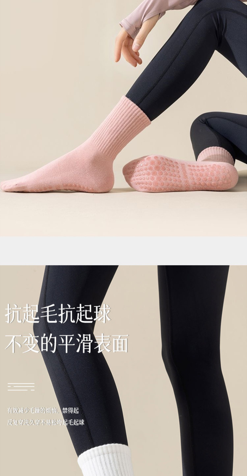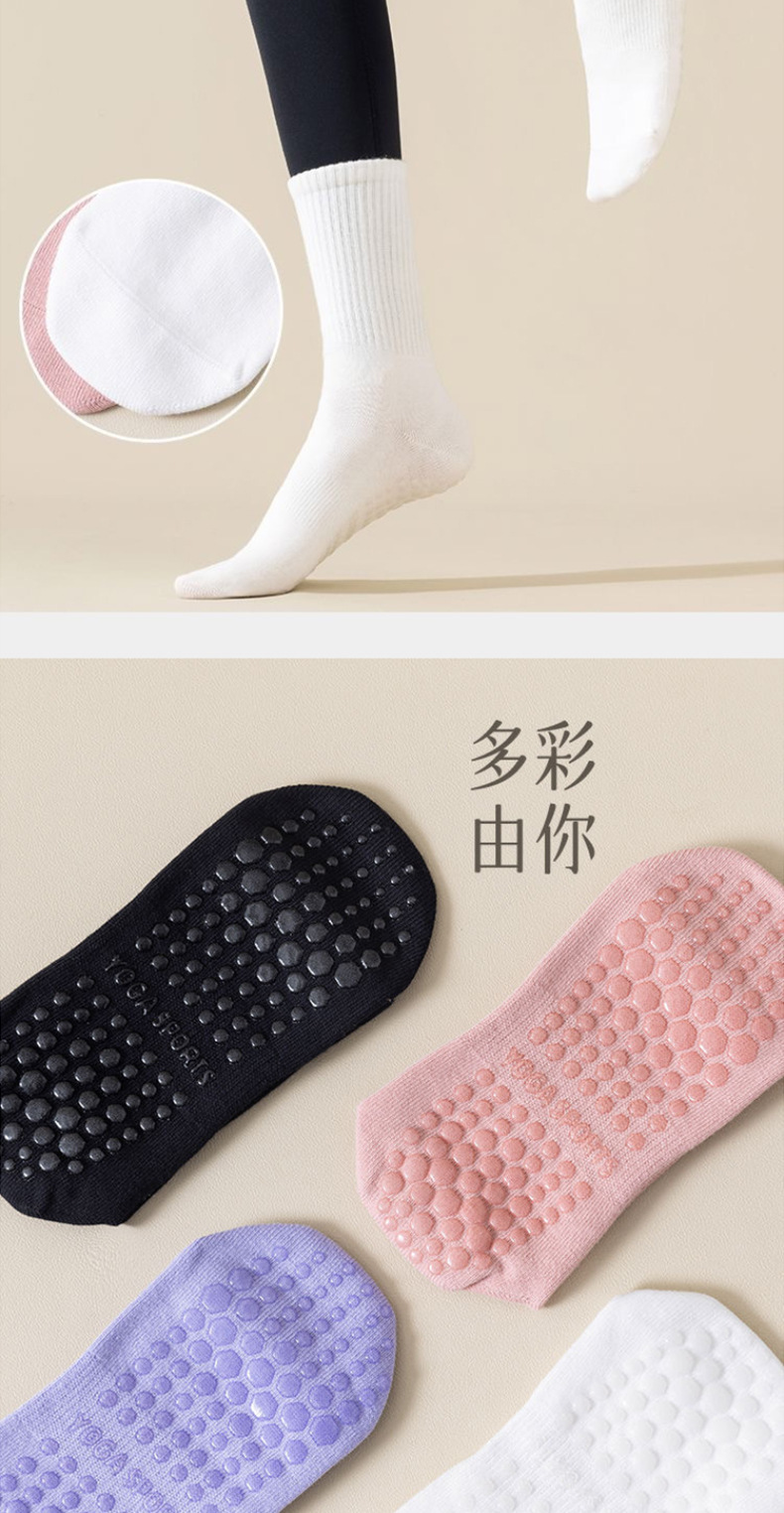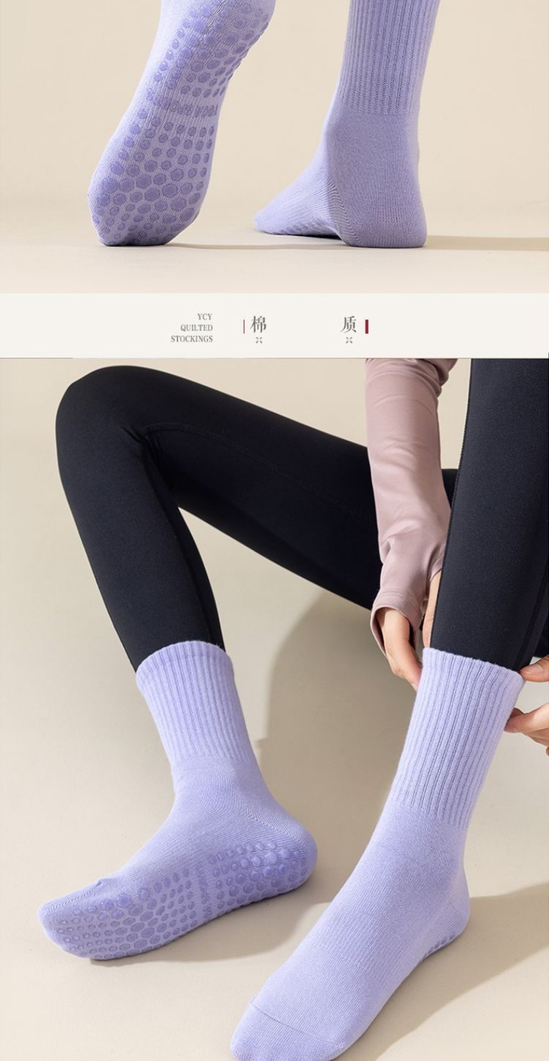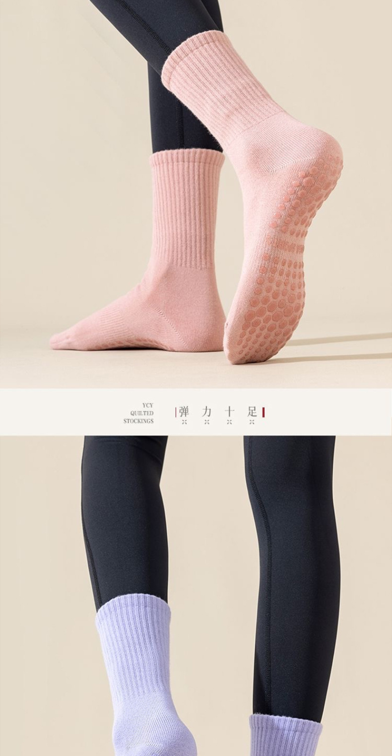 ヨガソックス、女性用ミッドカーフソックス、秋冬フィットネスダンス、ピラティス、プロ仕様の滑り止めスポーツソックス、女性用純綿フロアソックス