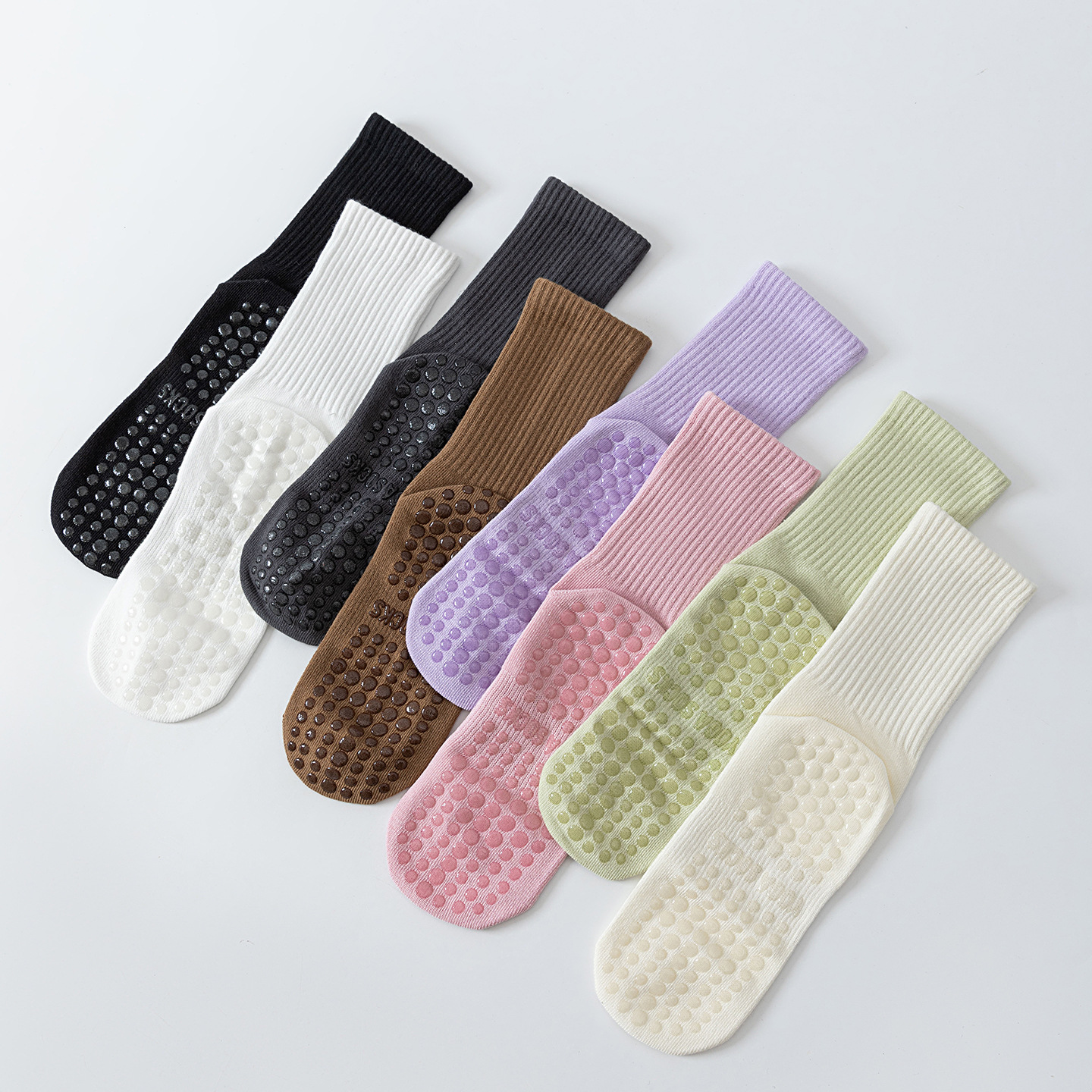 ヨガソックス レディース ミッドカーフソックス 綿製 滑り止め シリコン 室内フィットネス 毛玉防止ソックス プラティ レディース スポーツソックス