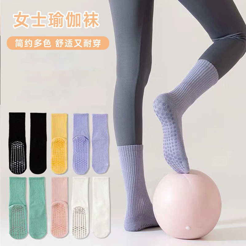 专业瑜伽袜子女中筒袜防滑硅胶室内健身长筒袜普拉提女士运动棉袜
