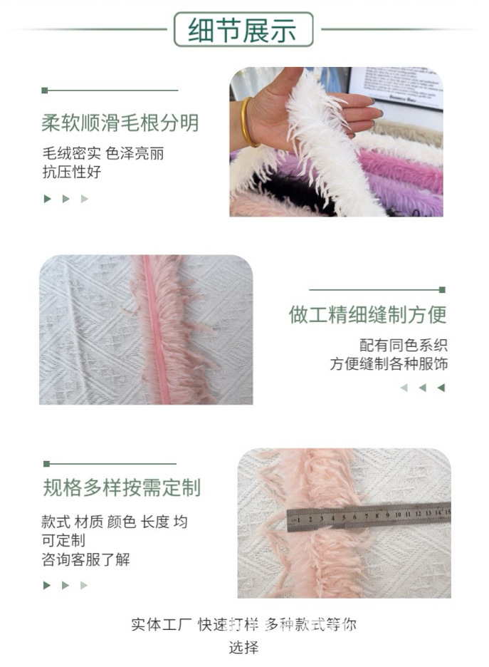 人気のクロスボーダー風オーストリッチフェイクファー衣料品アクセサリー、ベルト、ネックウォーマー、DIY装飾、ファー飾り、フェイクファー襟、ファー襟飾り