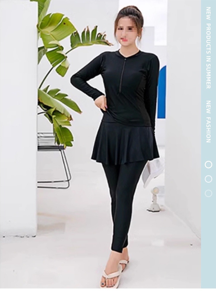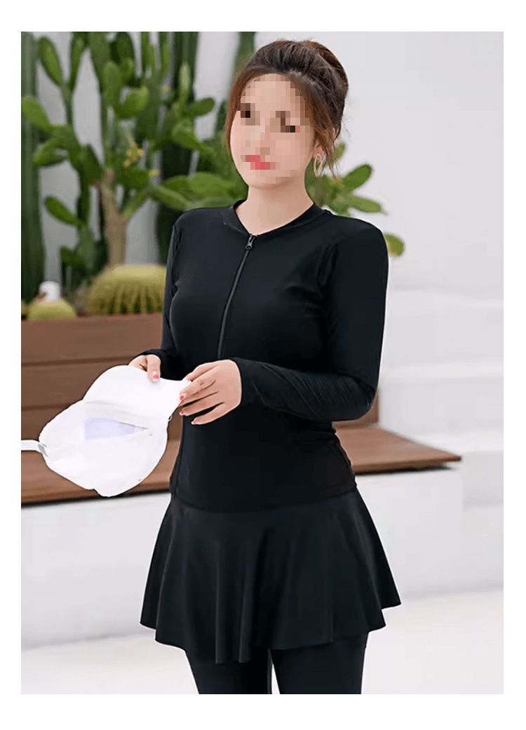 女性用ウェットスーツ、長袖スプリットスカート水着、コンサバティブ痩身速乾スポーツパンツ、日焼け止めシュノーケリングサーフィンスーツ