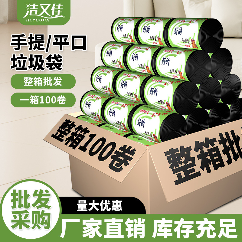 平口ゴミ袋全箱卸売り家庭用厚手の中サイズの黒色引き袋卸売り使い捨てプラスチック袋