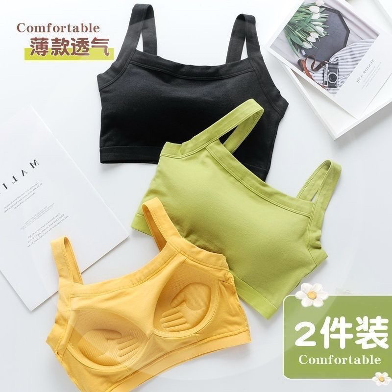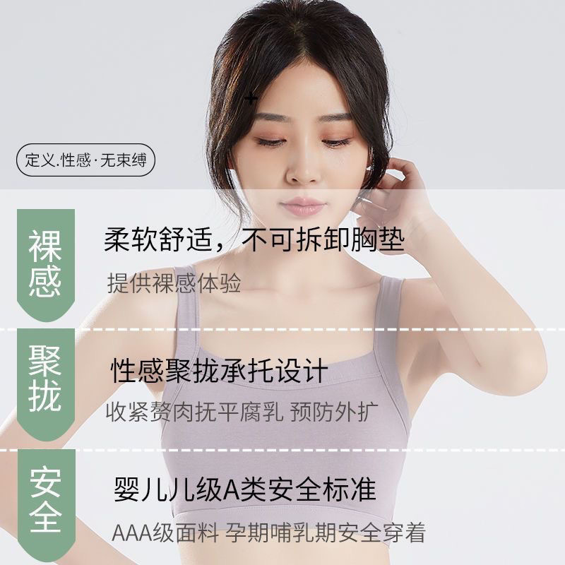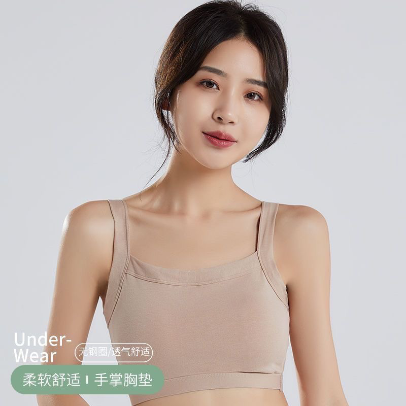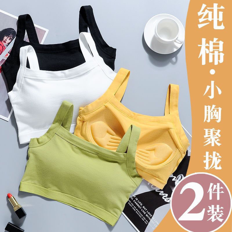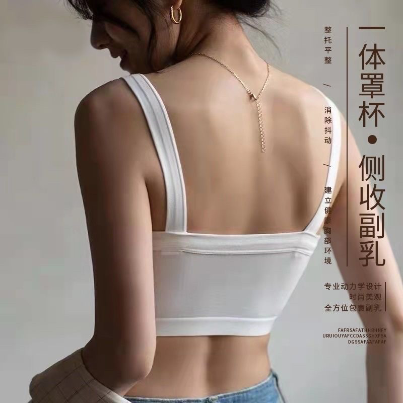 纯棉一体式聚拢运动防走光吊带美背心无钢圈内衣女防震上托裹胸女
