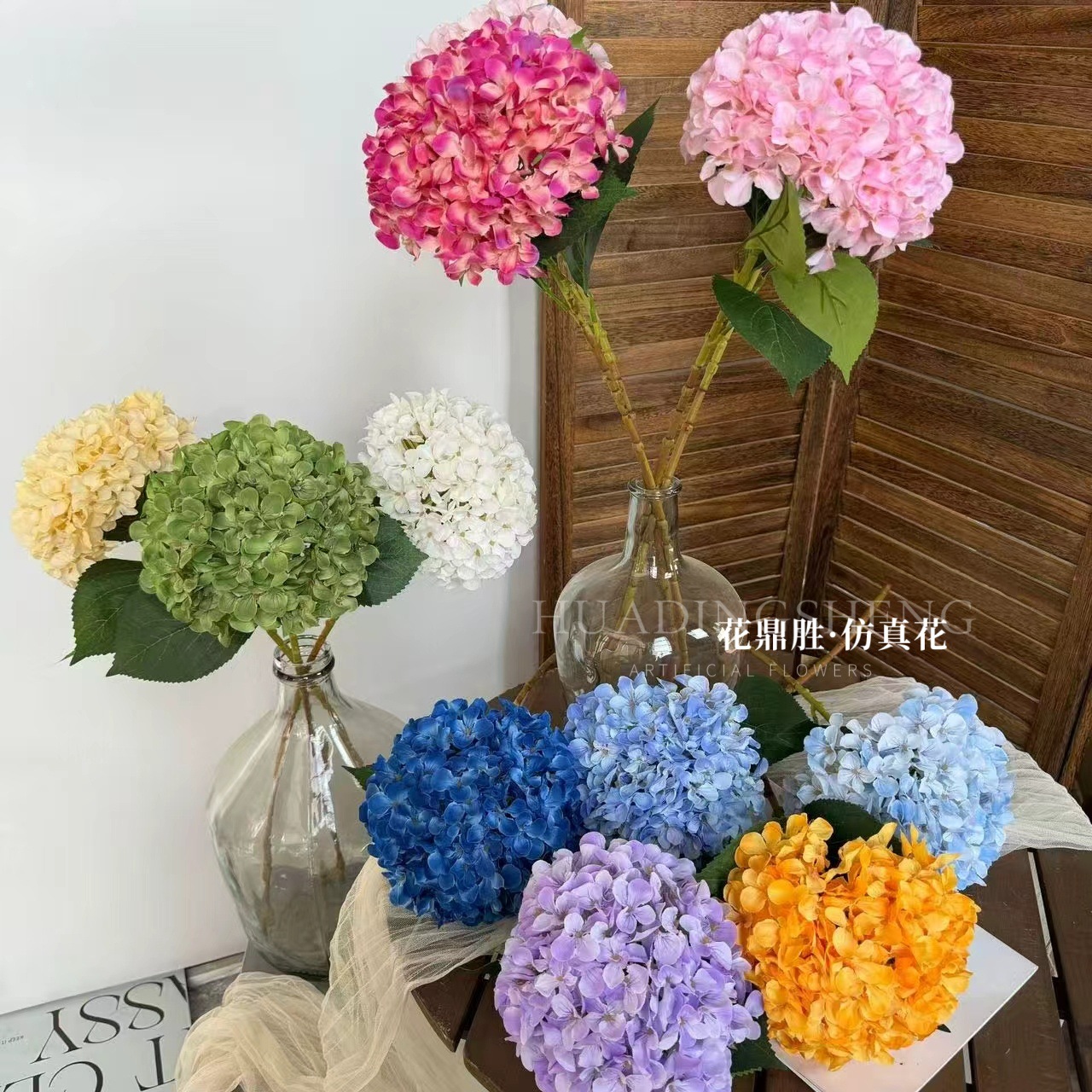 模擬アジサイシングル 3D ロングアジサイ結婚式の装飾造花ホテルのソフト装飾リビングルームディスプレイ造花卸売