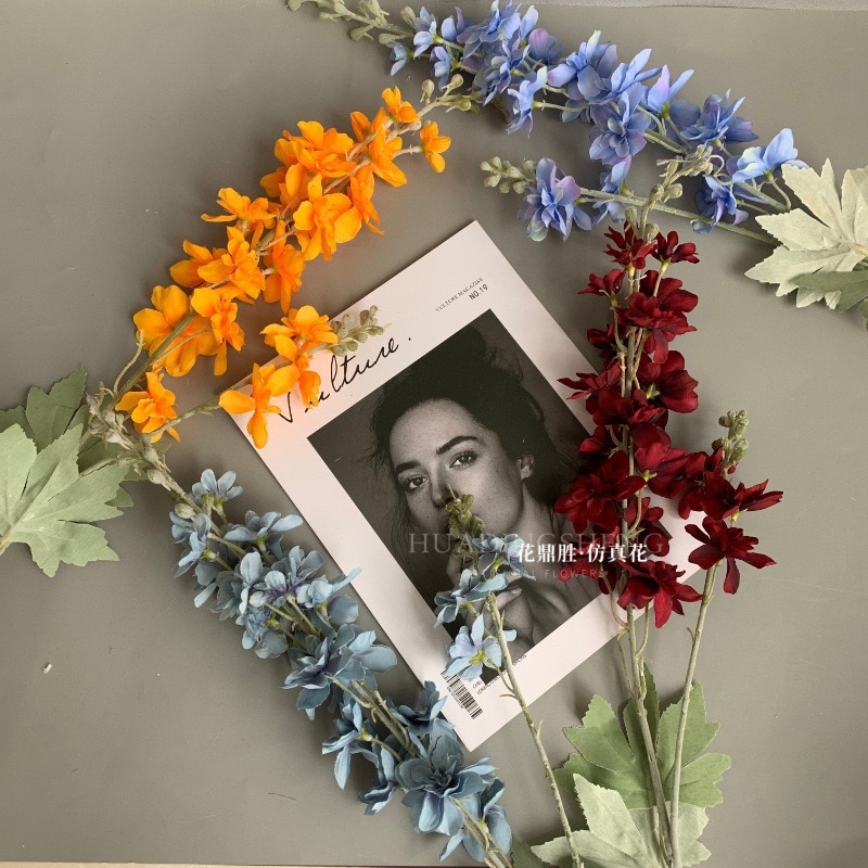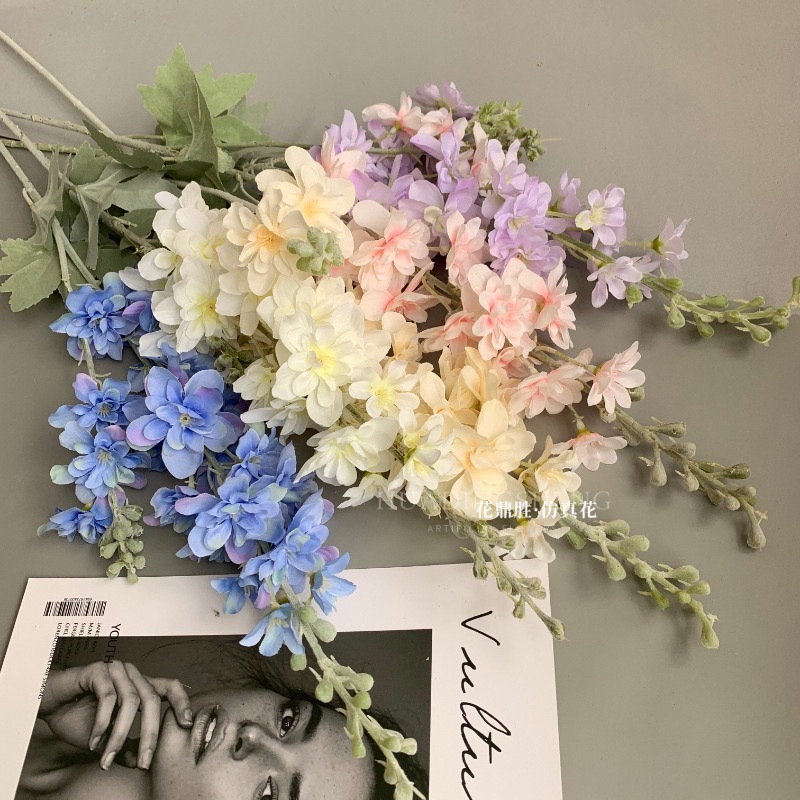 クロスボーダー卸売り2叉植毛飛燕草シミュレーション花絹布偽花結婚祝い撮影高級感装飾花花材