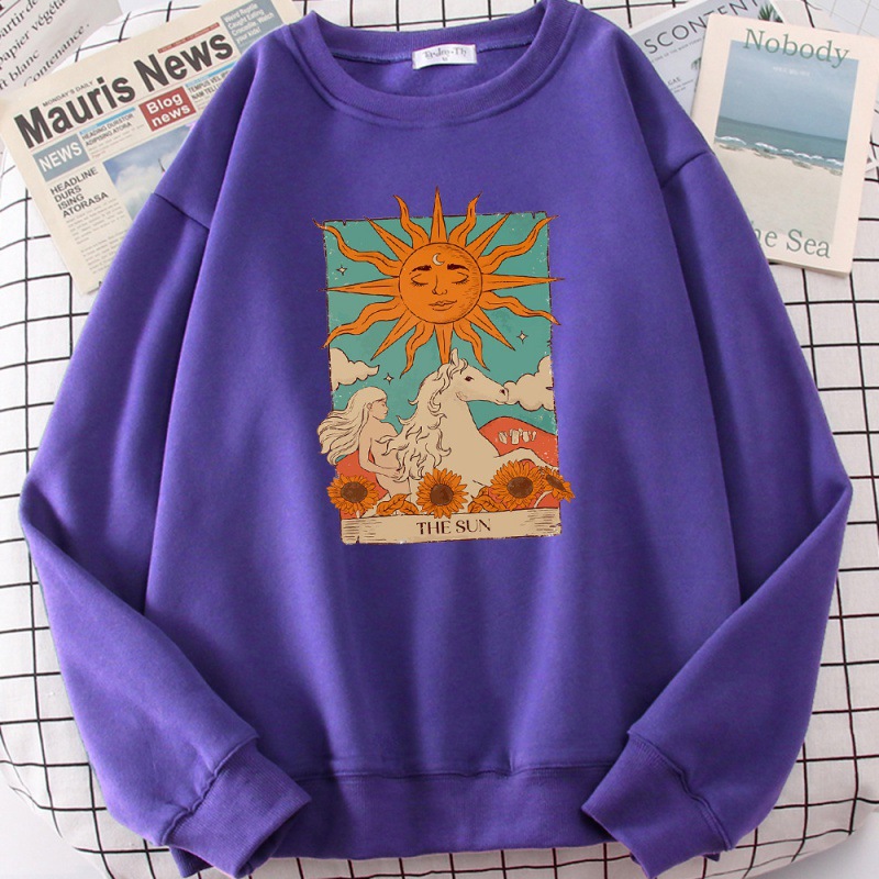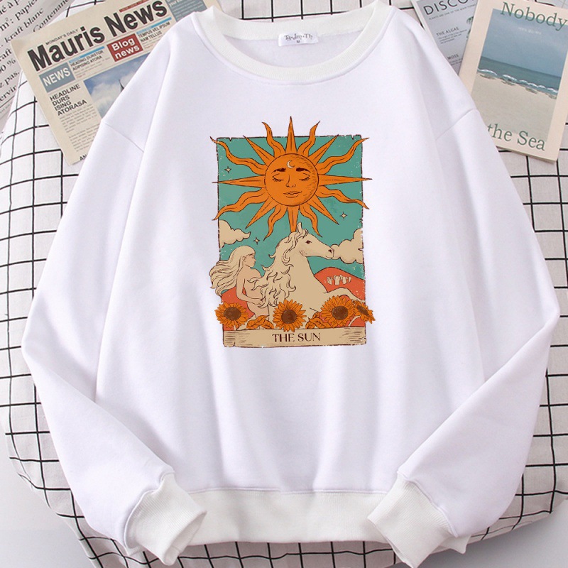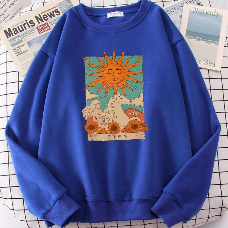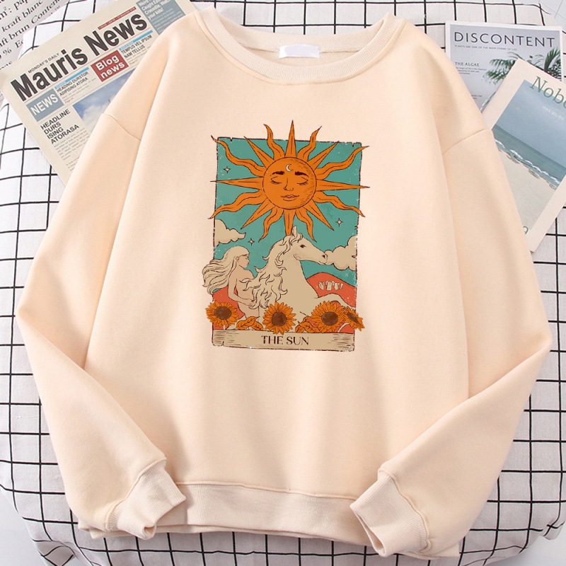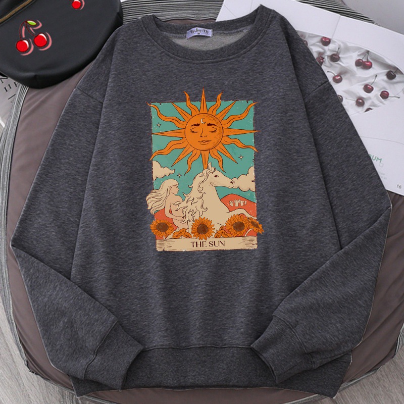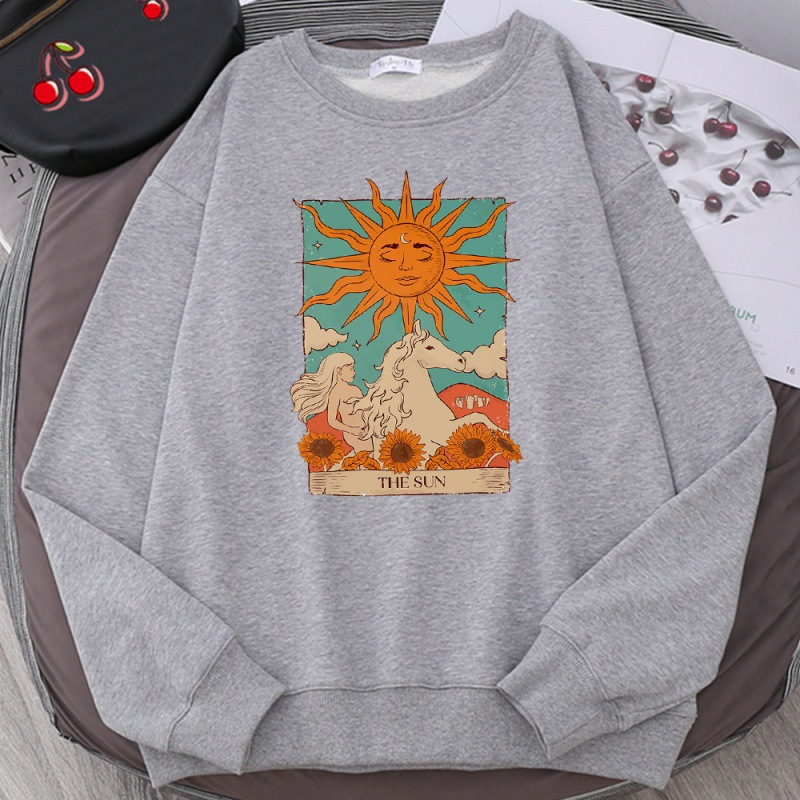タロットカードアート太陽プリント男性パーカーヴィンテージカジュアルP