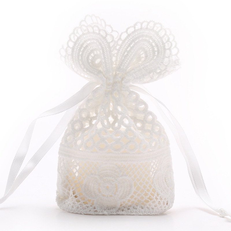 新商品の束袋の白い星のレースのひものガーゼの袋の現物の竹節の糸のアクセサリーの贈り物の袋のレースの収納袋