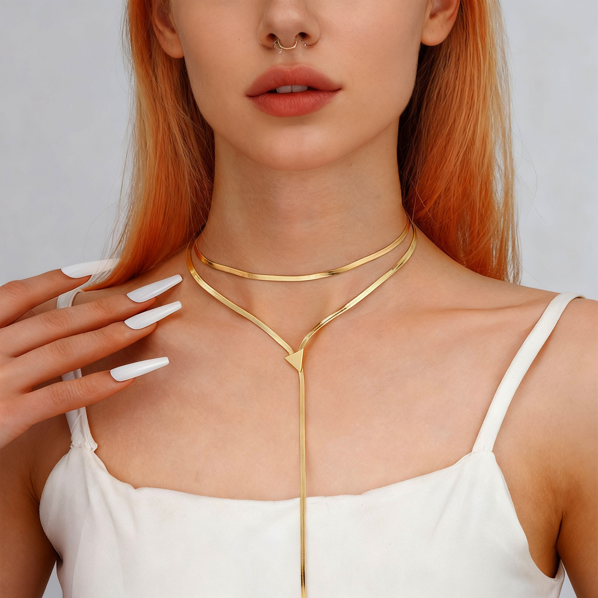 跨境欧美项链女高级感 简约金色蛇骨链流苏多层项链金属链条项链