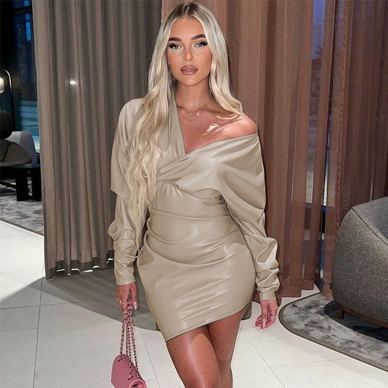 欧米風インスタ映えレディースファッション新作2025春秋アマゾン人気商品セクシーでスリムな印象の折り襟ワンピース