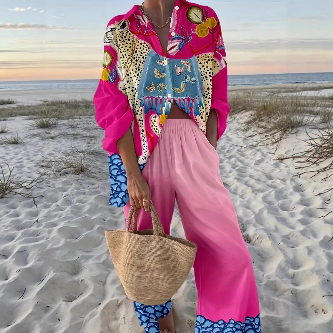 D2509欧米の国境を越えた新型女装カジュアルプリントビーチ水着は胸シャツパンツ3点セット