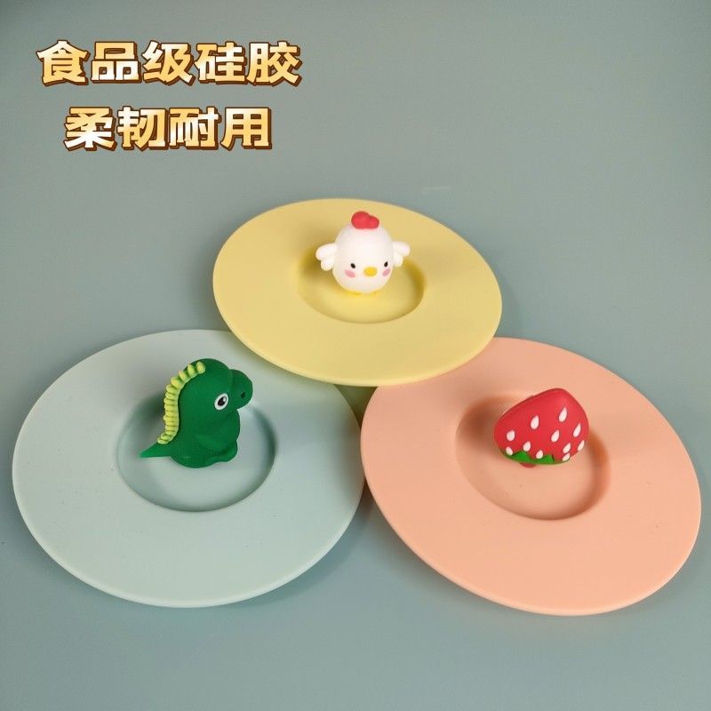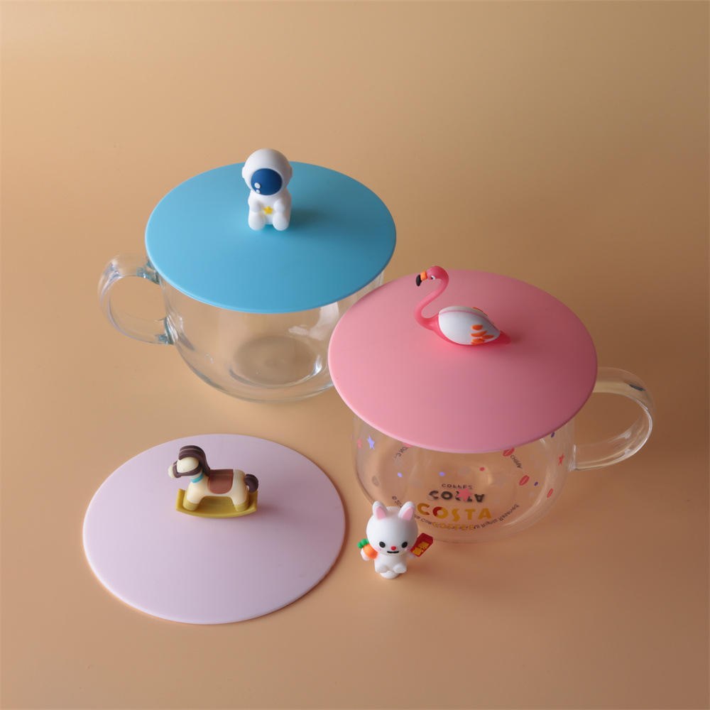 シングル販売アニメかわいいシリコンカップ蓋食品級水カップマグカップ汎用防塵ガラスカップ蓋耐高温