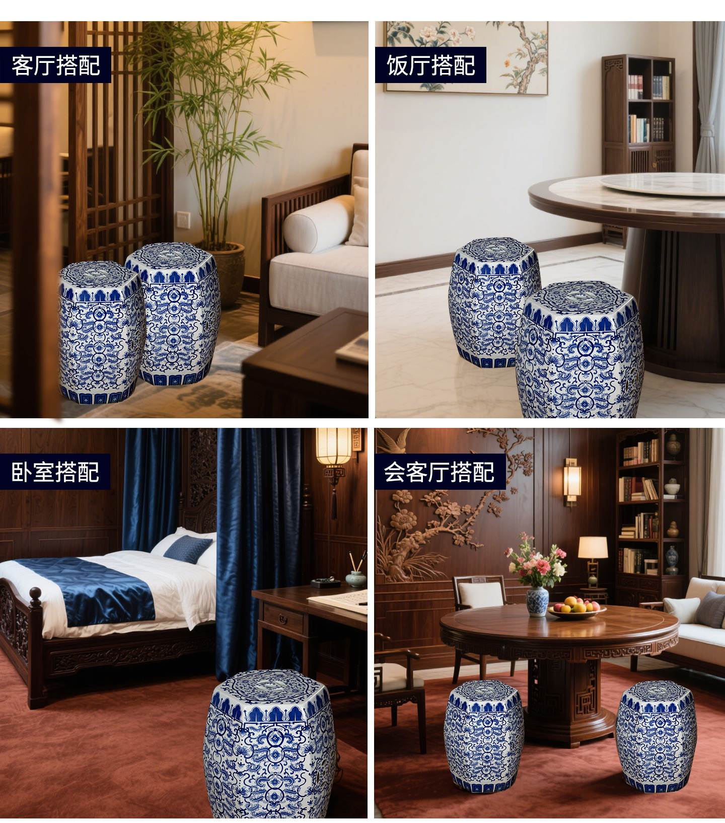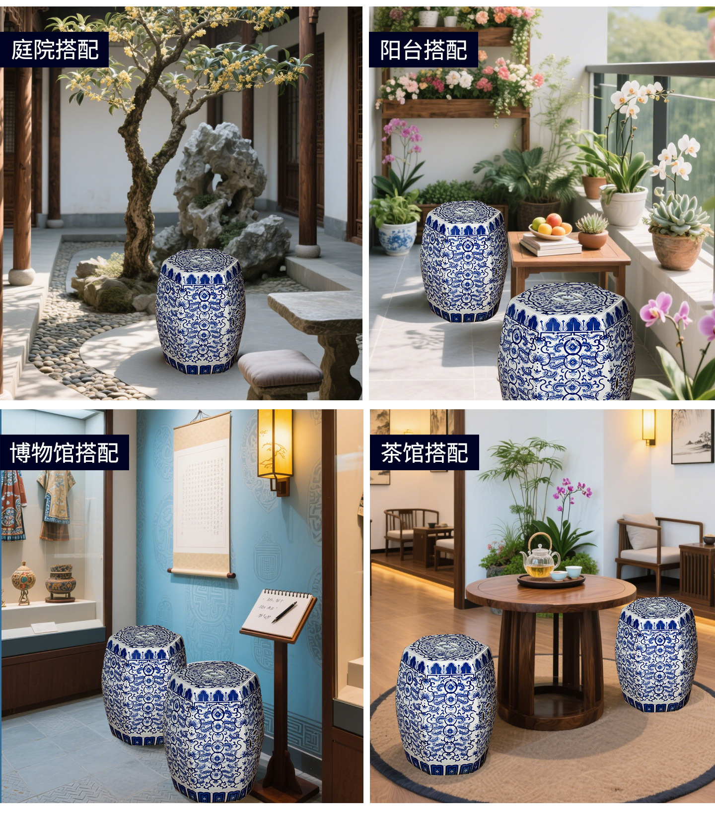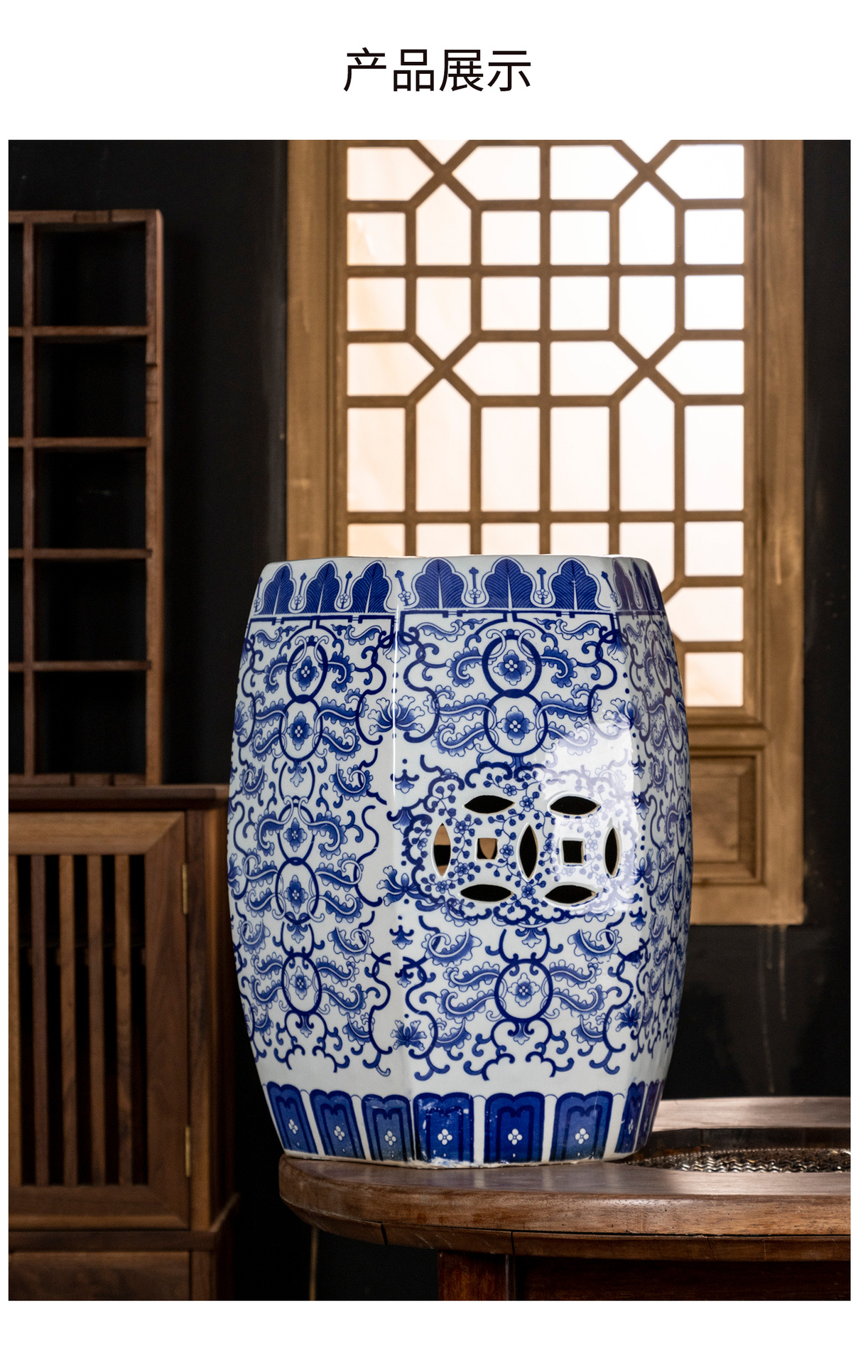 Yutong Home「十二金簪」明清古典陶器ドラムスツールコーヒーテーブルスツールアンティークセラミックスツールティールームスツール。