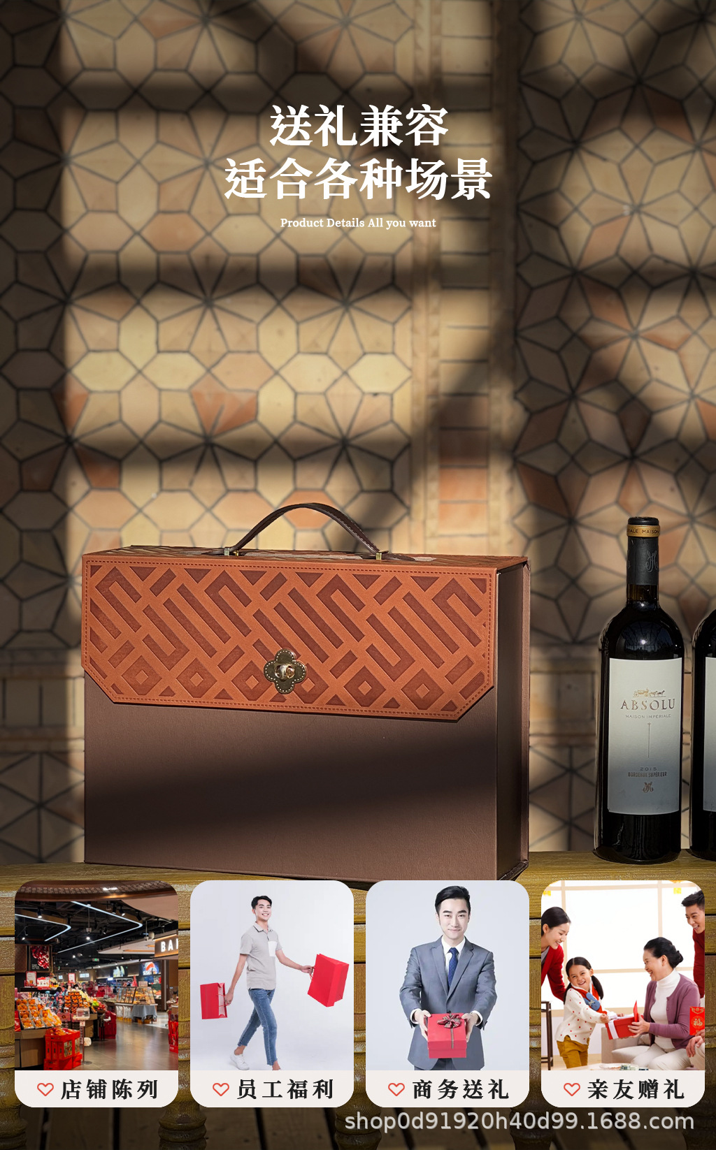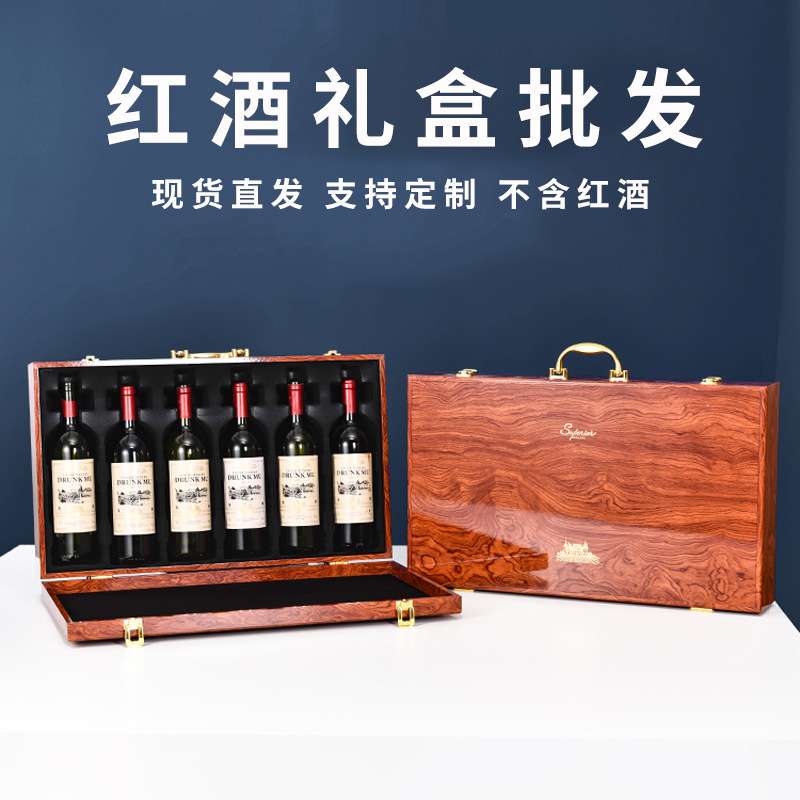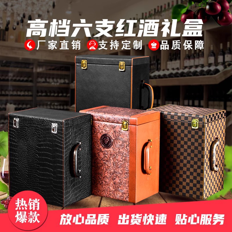 批发现货红酒礼盒6支装六支葡萄酒高档手提箱礼品盒皮盒皮箱定制