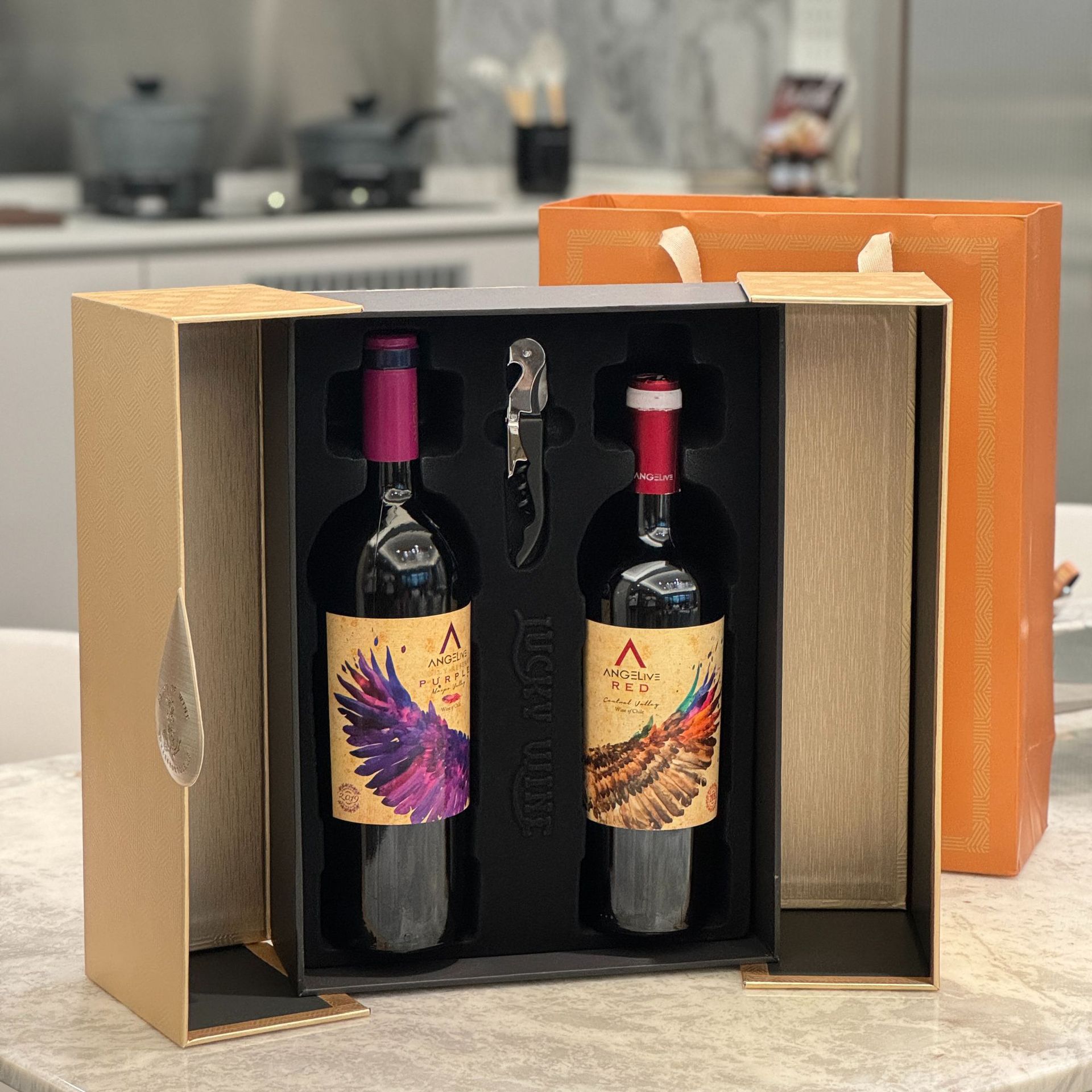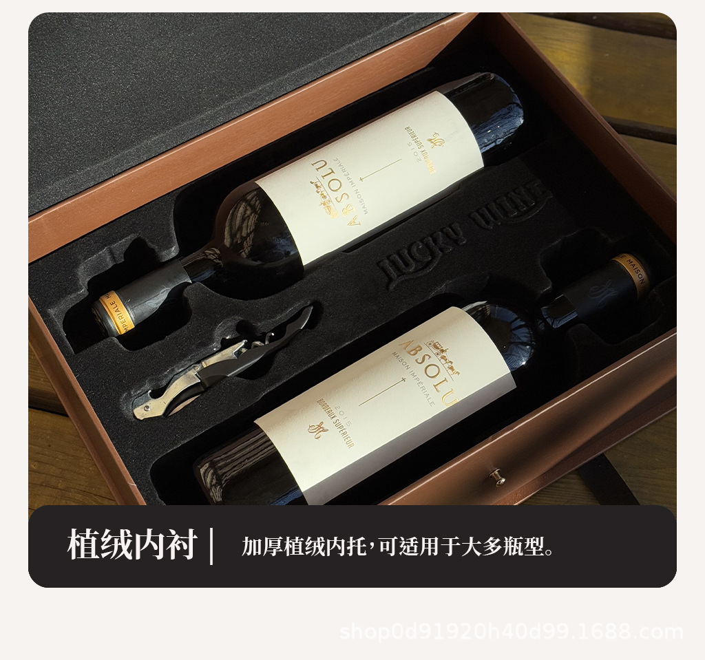 両開きの高級赤ワインギフトボックス、ダブルパック、ユニバーサルモデル、大きなベリーボトルに収納可能、ワインカードスロットを自由に調整可能