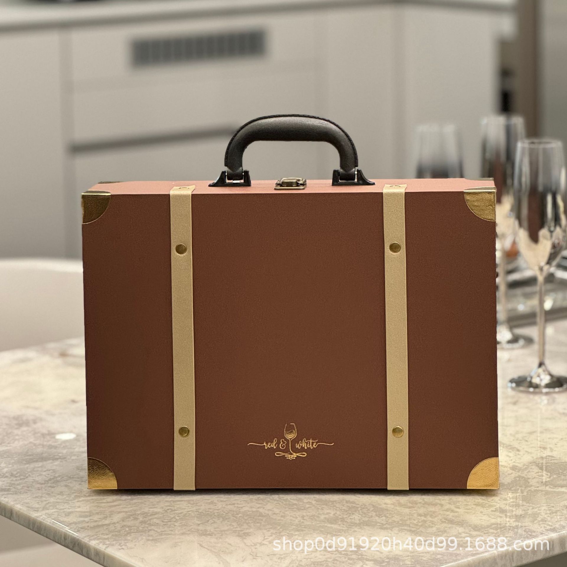 复古红酒礼盒空盒旅行箱设计 高档双支红酒包装盒 两瓶装葡萄酒盒